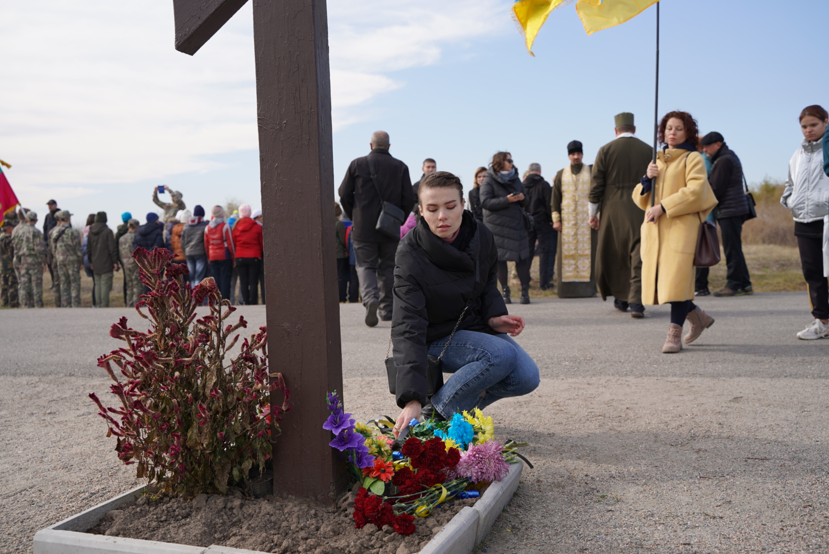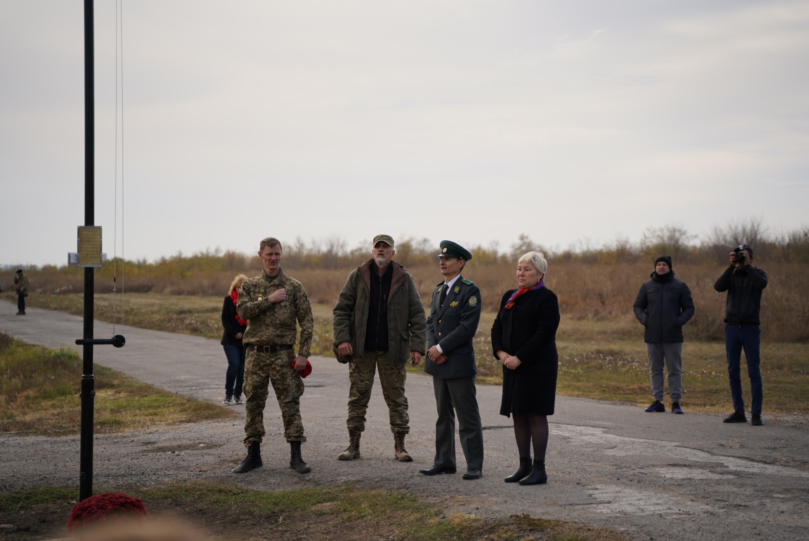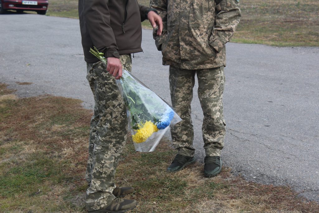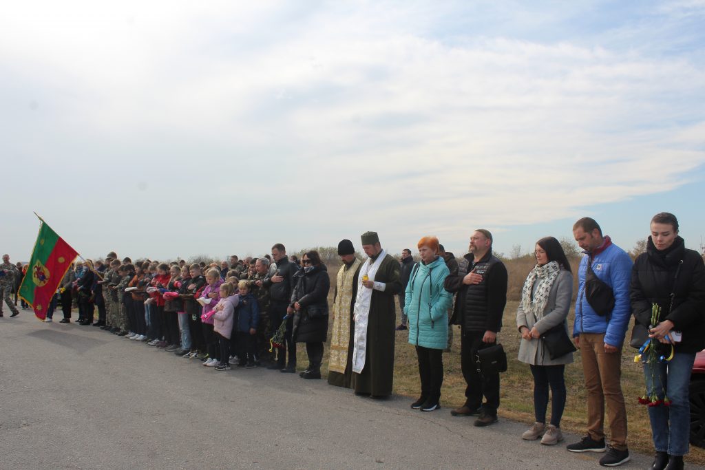 Військові, сім’ї загиблих, які не стали перезахоронювали своїх чоловіків та синів, полеглих за Україну, учні Запорізького січового колегіуму та просто небайдужі запоріжці, зібралися на урочисте підняття прапору на честь загиблих воїнів.
