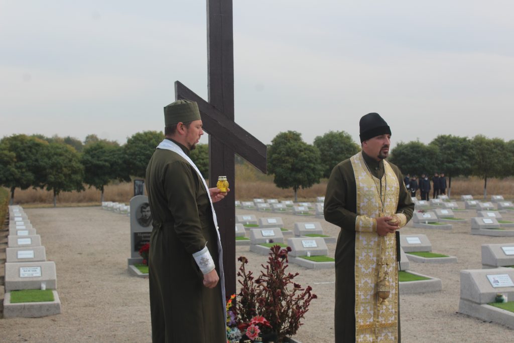 Перед церемонією підняття прапору священнослужителі Запорізької єпархії Православної Церкви України протоієрей Діонісій Кравчук, капелан військової частини 3026 Національної гвардії України та протоієрей Анатолій Кусик, капелан військової частини 3033 Національної гвардії України відслужили паніхіду за загиблими захисниками України й закликали присутніх пам’ятати про подвиг, яким прославили себе солдати, поховані на цьому полі. Державний прапор на флагштоці підняли рідні загиблих та побратими, а присутні поклали квіти на могили захисників.
