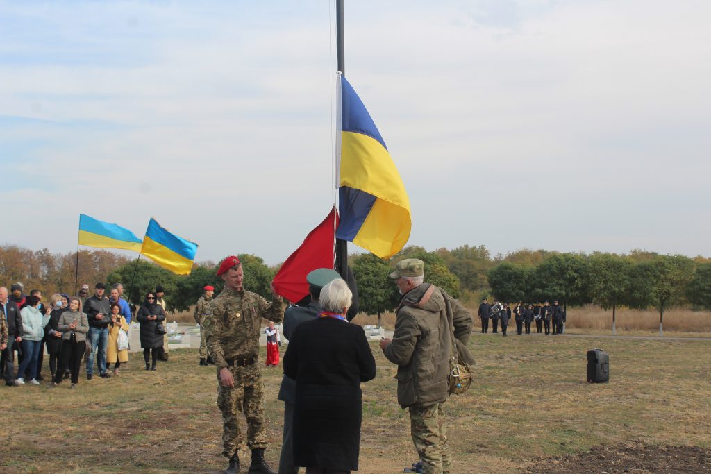 Сьогодні, 24 жовтня, на Кушугумському кладовищі відбулося урочисте підняття Державного прапора на новому флагштоці.