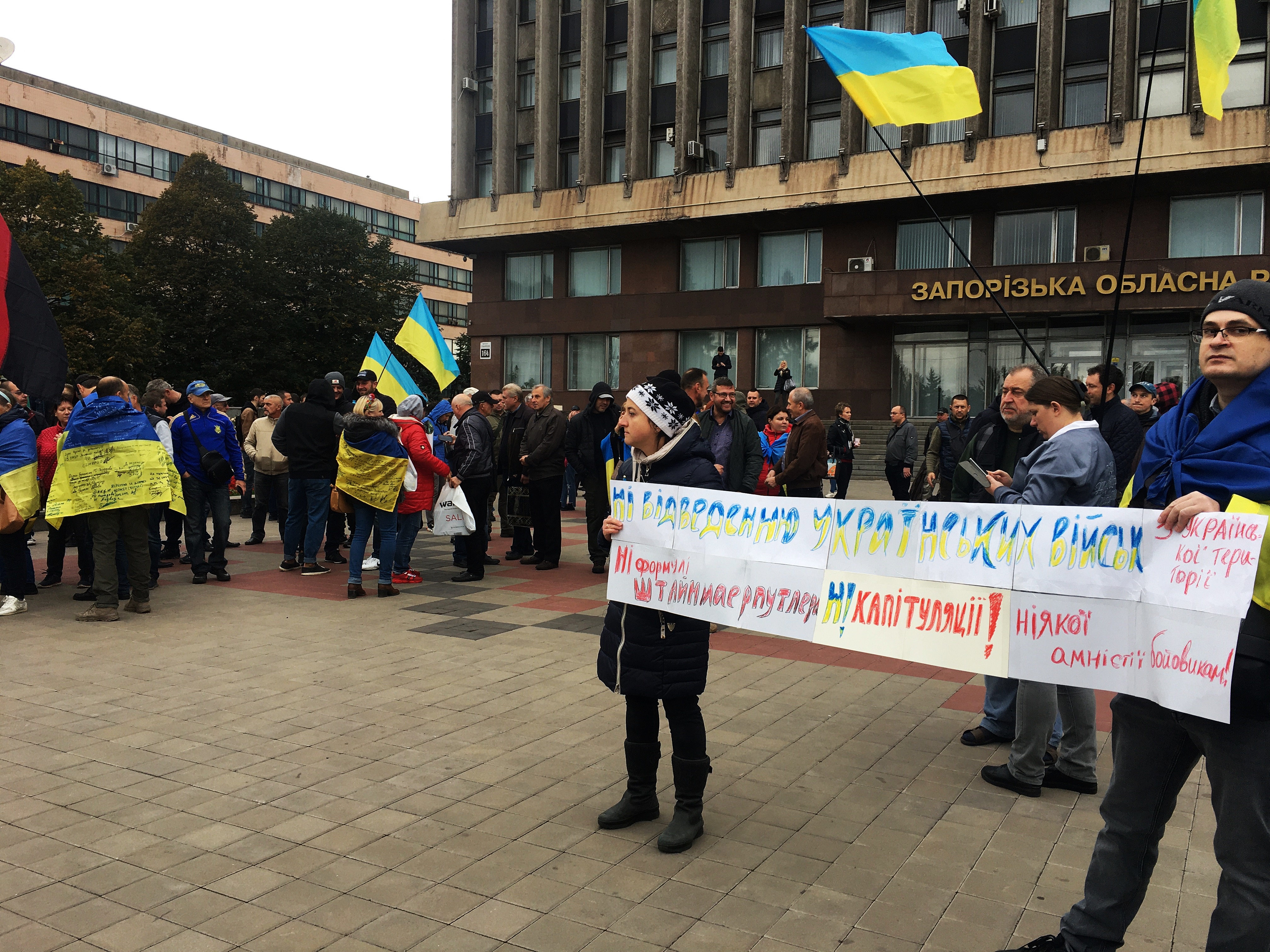 Запоріжці закликають не допустити надання особливого статусу окупованим територіям, притягнути до відповідальності зрадників, проводити вибори на території ОРДЛО закликають лише після повної деокупації та відновлення кордонів.