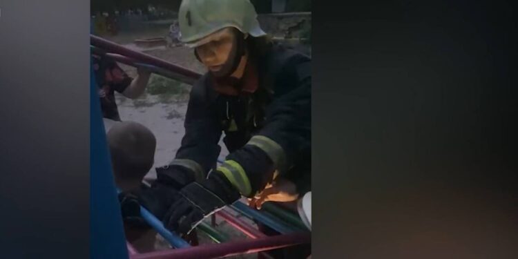 7-річний малюк під час гри застряг головою між металевих конструкцій сходинок і йому знадобилась допомога ДСНС. Нещасний випадок стався вчора о 20:45 в Запоріжжі. Дитина перебувала із бабусею на дитячому майданчику.