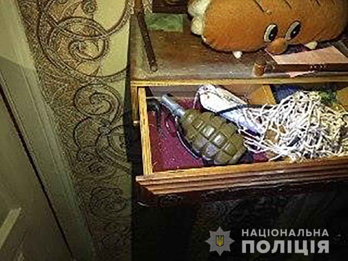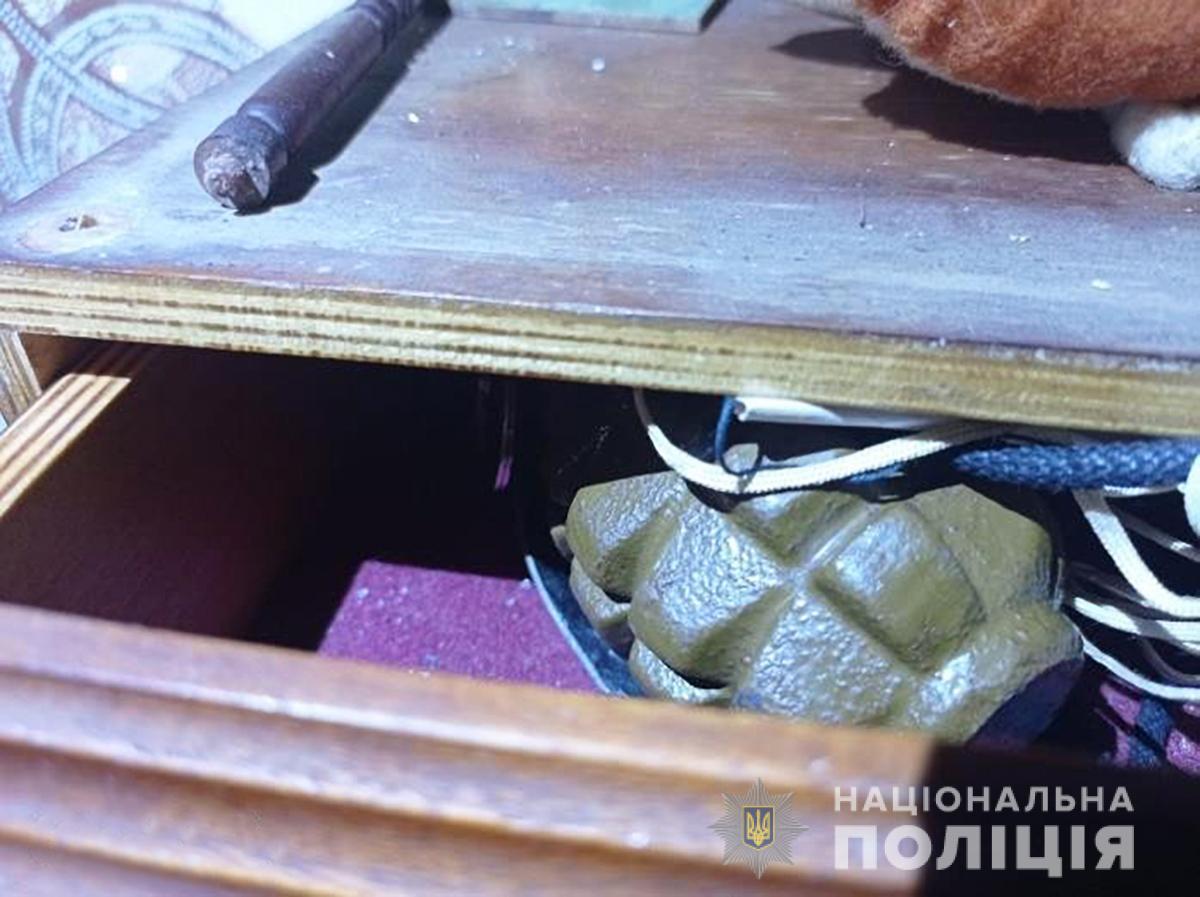 Прибувши за місцем мешкання чоловіка у провулок Квітучий, поліцейські провели санкціонований обшук. В квартирі було виявлено револьвер під патрон Флобера калібром 4 мм та гранату Ф1. Все відправлено на експертизу. Відкрито кримінальне провадження.