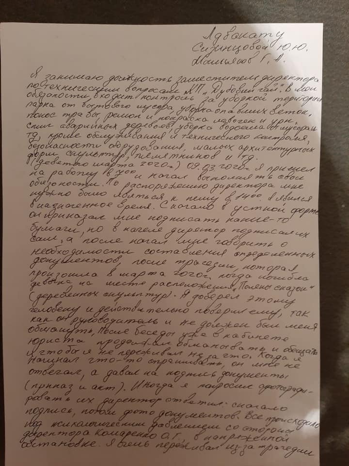 Заступник дирекотора КП «Центральний парк культури та відпочинку «Дубовий Гай» заявив, що його змусили підписати документ про демонтаж дерев’яних скульптур заднім числом.