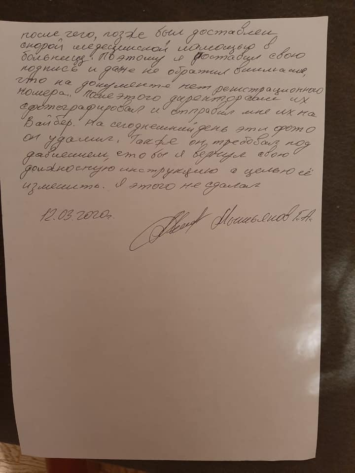 Адвокат постраждалої сім’ї Володимир Ляпін опублікував у соціальній мережі Фейсбук рукописного листа від підозрюваного. У листі він описує ситуацію і заявляє про тиск та спроби підміни посадових інструкцій з метою уникнення відповідальності самим Олегом Комаренком.