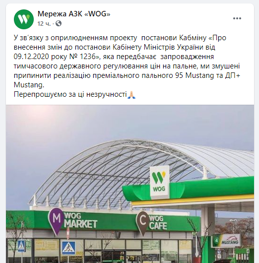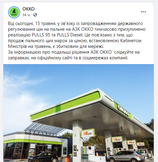 Таке рішення мережі опублікували вчора на своїх сторінках. Це викликано тим, що Кабінет міністрів України розпочав процедуру державного регулювання цін на нафтопродукти. Зокрема, встановив розмір дозволених надбавок — не більше 7 гривень на дизельне пальне, та не більше 5 гривень на бензин.