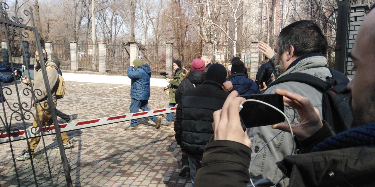 Акція поступово перестає бути мирною. Протестуючі зняли з петель ворота для вантажного транспорту і зайшли на територію.