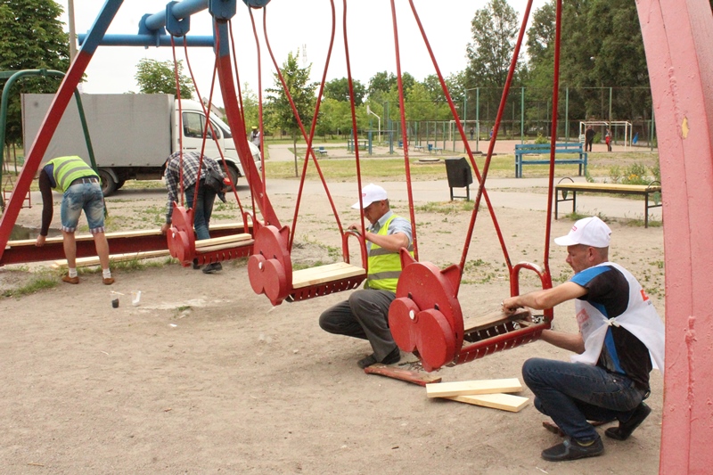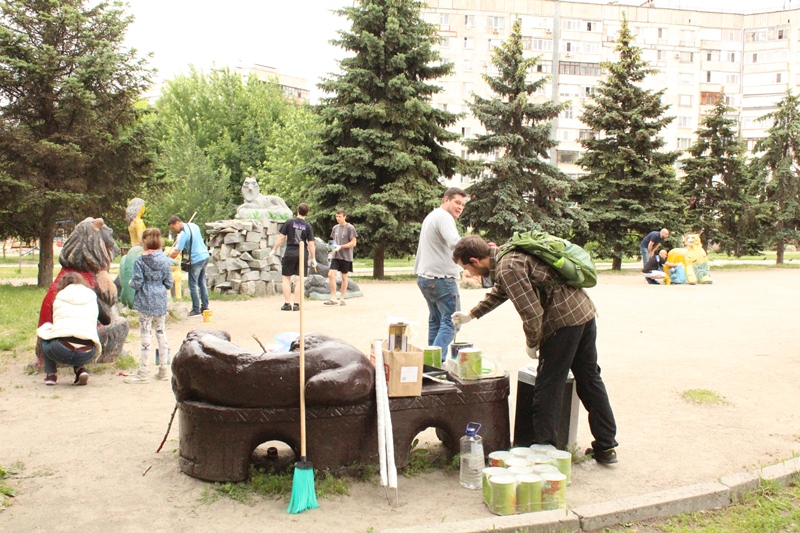 Роботи тривали з десятої ранку до п’ятої години вечора. За цей час вдалося очистити парк від сміття, покосити траву, відремонтувати зламані гойдалки, оновити фігури героїв, покрасити та відремонтувати лавки, заповнити пісочниці піском, зібрати та вивезти величезну кількість гілок.
