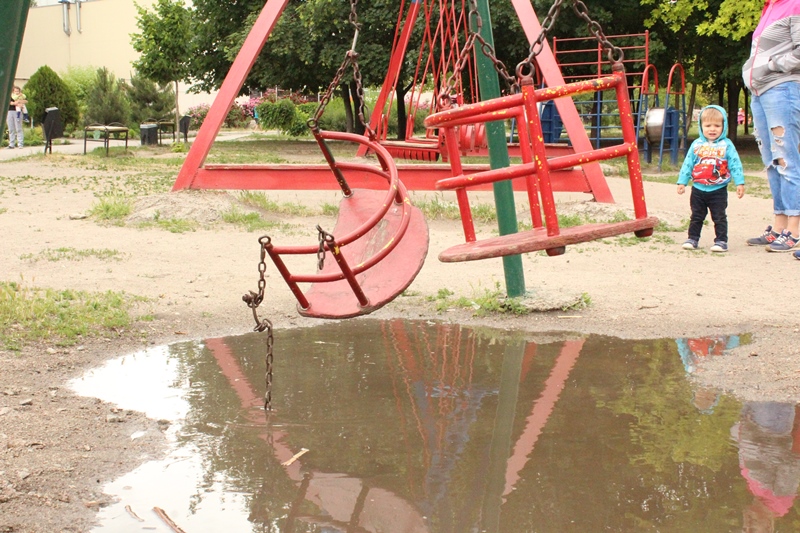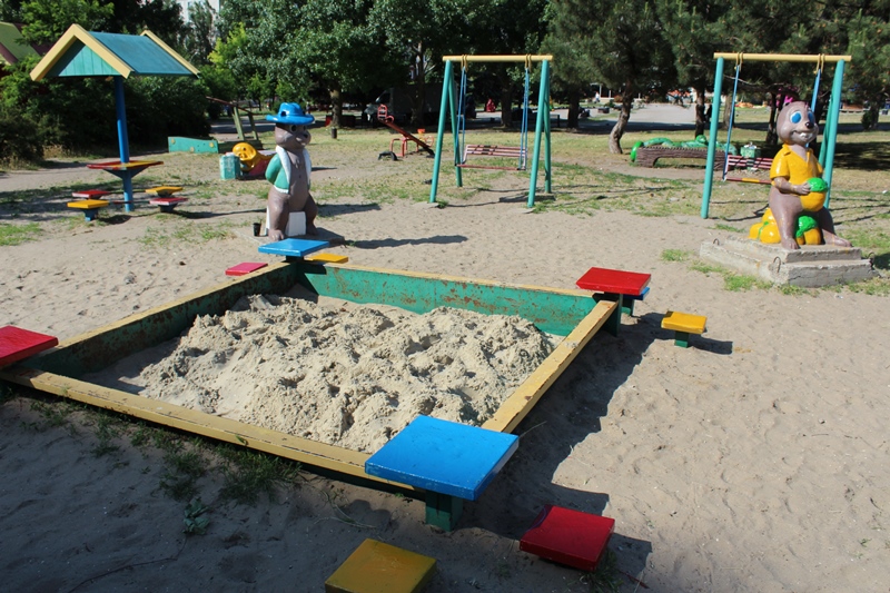 Парк складається з декількох зелених зон. В кожній з них установлені лавки та дитячі майданчики, проте вони тривалий час знаходилися в неналежному, а в деяких випадках і в аварійному стані. Здебільшого небезпечними були саме дитячі гойдалки.