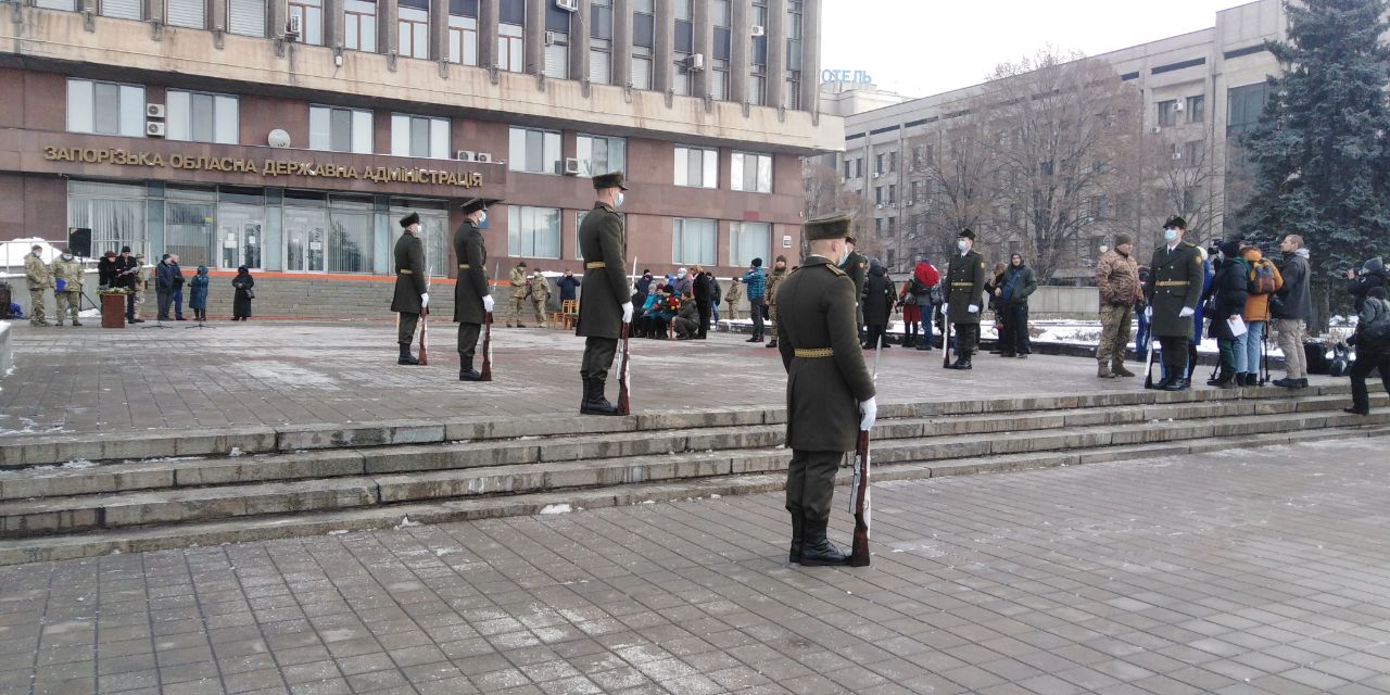 Сьогодні, 14-го січня, навпроти Запорізької ОДА відбувається церемонія прощання з воїном. Провести в останню путь солдата прийшли рідні та друзі, військові та просто небайдужі запоріжці. На церемонію зібралось декілька сотень людей.