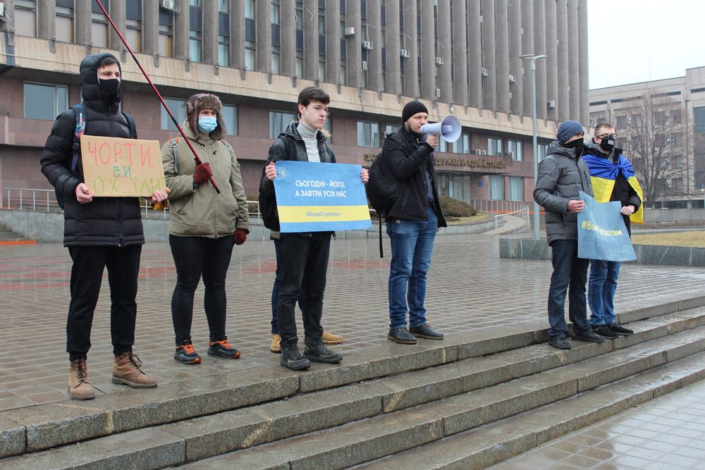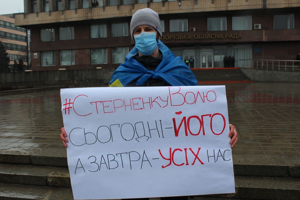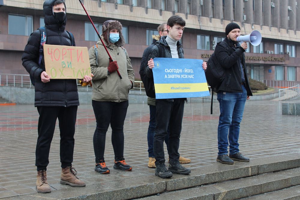 Нагадаємо, запоріжці вже вдруге виходять до будівлі ОДА в підтримку Стерненка. Минула акція зібрала близько 40 осіб. Люди тримали в руках плакати “Вам тут не Рашка”, “Волю Стерненку”, “7 років кожному з нас” та “Аваков+ Венедіктова+ Зеленський = російська модель правосуддя”.