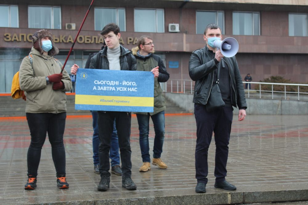 «Сьогодні ми продовжуємо акцію на підтримку звільнення Сергія Стерненко — політичного в’язня авторитарного режиму Зеленського. Ми не можемо знаходитися осторонь, адже Україна має бути демократичною, правовою державою. Ми були такою державою до приходу нинішньої влади, а зараз людина, яка має проукраїнські погляди, не може безпечно почувати себе в рідній Україні. Сьогодні ми вийшли попри дощ і надалі будемо виходити. Апеляції ще не призначили, але ми будемо чекати рішення апеляційного суду», — говорить організатор акції, голова ГО «Солідарна молодь Запоріжжя» Віктор Дерев’янко .