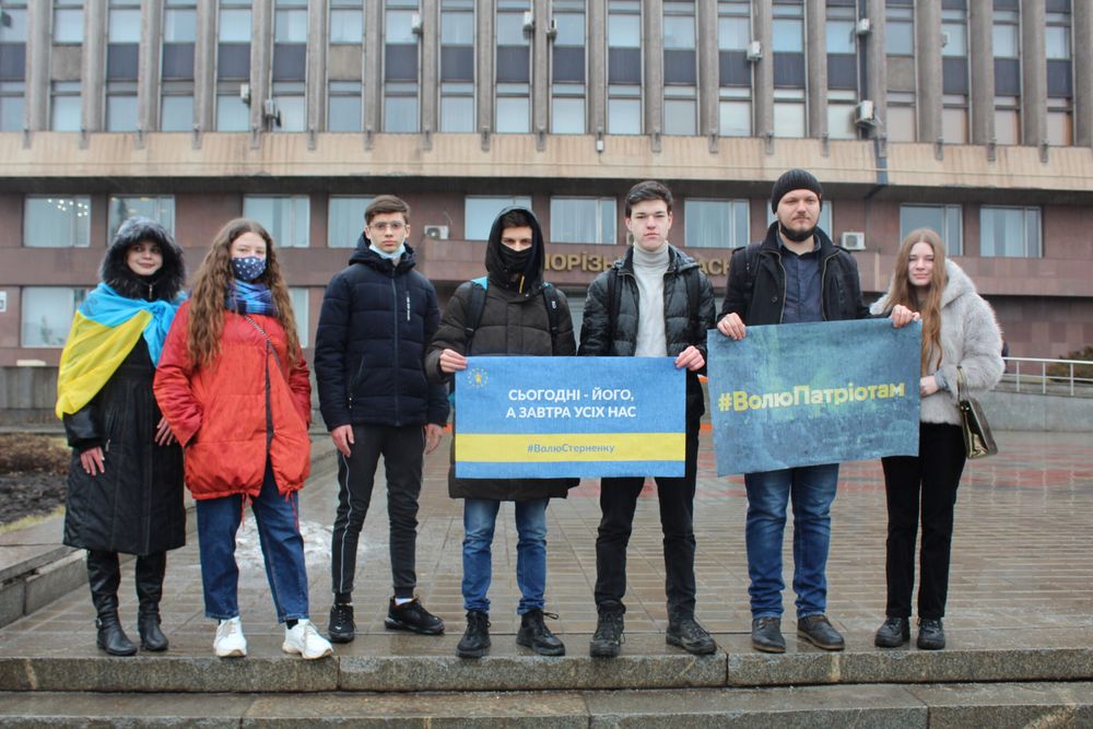 Сьогодні, 27 лютого, біля будівлі ЗОДА, пройшла мирна акція на підтримку ув’язненого активіста Сергія Стерненка. Запоріжці тримали в руках державні символи та плакати «Сьогодні — його, а завтра усіх нас», «Волю патріотам», «За! Гратами». Ініціаторами заходу були ГО “Солідарна молодь” та “Рух опору капітуляції”.