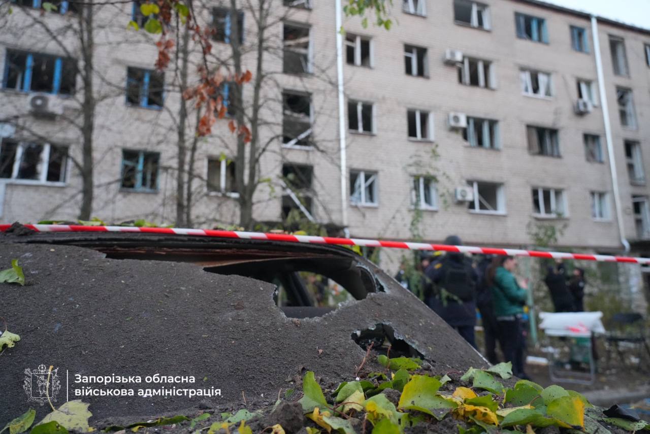 Окупанти завдали по Запоріжжю щонайменше 20 БпЛА та 8 ракетних ударів. Зруйновані кілька поверхів гуртожитку.