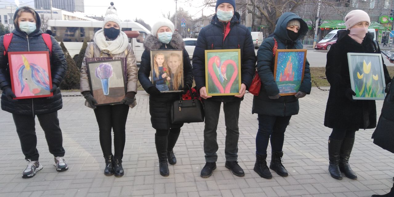 Люди прийшли з малюнками та фото Ані Ждан. До мітингуючих вийшли заступники міського голови Володимир Волобуев та Роман Омелянович.