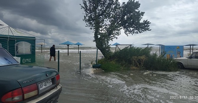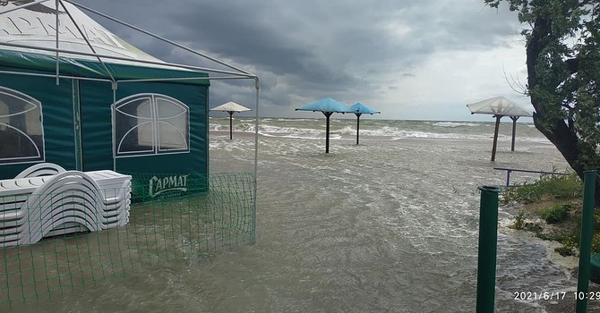 В Бердянську затопило пляжі, а потім вода добралась і до центральних вулиць.