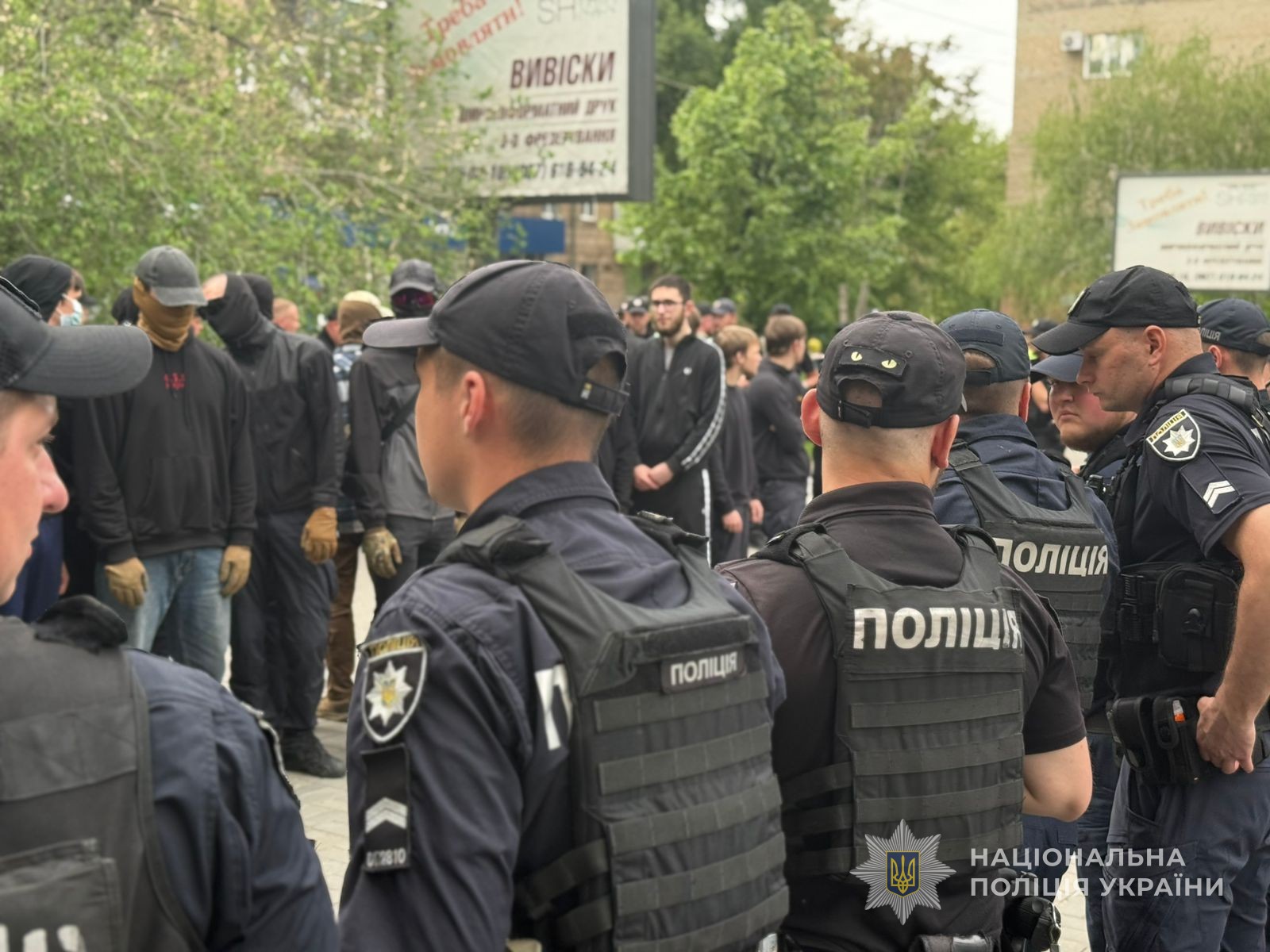 Порушень громадського порядку не допущено. Наразі поліцейські перевіряють усіх учасників та встановлюють повні обставини події.