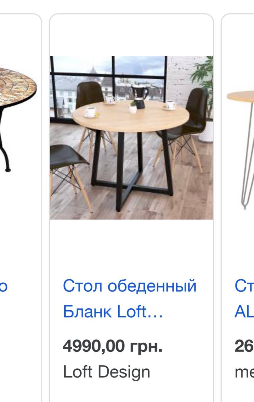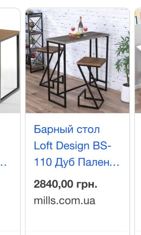 Вартість маленького столу в стилі лофт, яких ми на фото нарахували мінімум чотири, в середньому складає майже п’ять тисяч гривень. Найдешевший високий стіл ми знайшли за 2100 гривень.