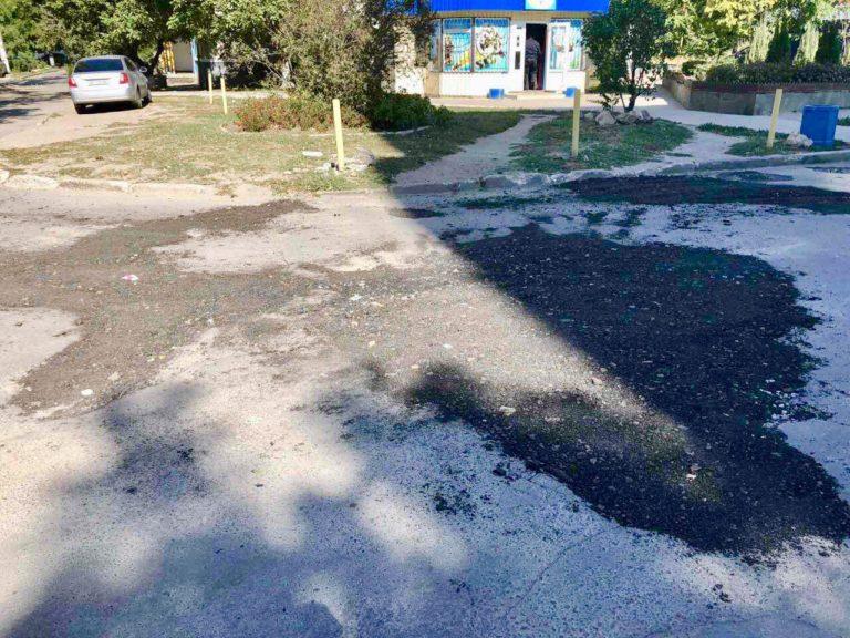 Жителі Бердянська, помітили, що комунальники доволі дивним способом латають ями на дорогах – засипають проблемні ділянки асфальтною стружкою.