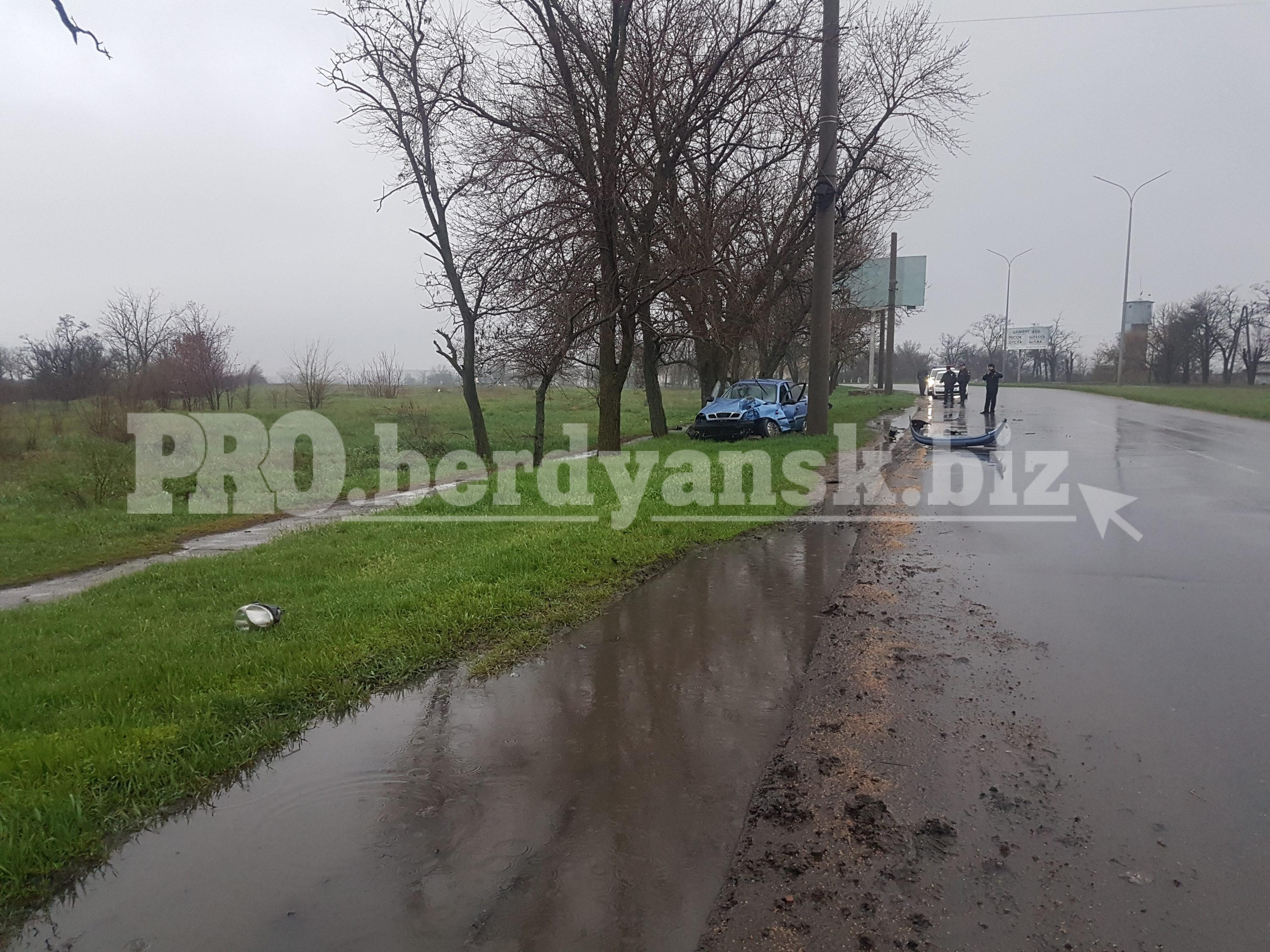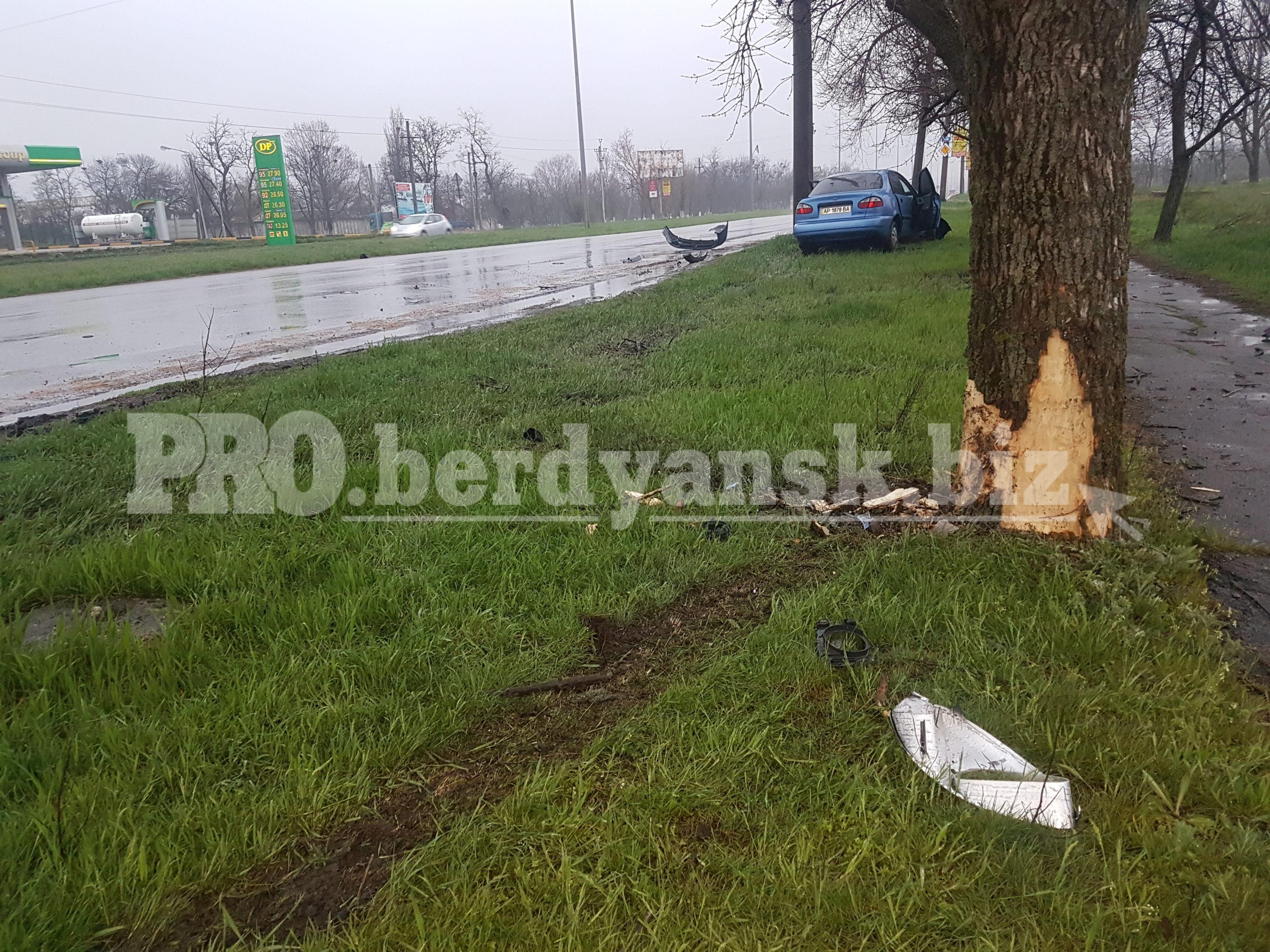 Близько 18:00 на Мелітопольському шосе 29-річний водій на авто «Daewoo» на великій швидкості не впоравшись з управлінням виїхав на узбіччя, в результаті чого транспорт врізався в дерево.