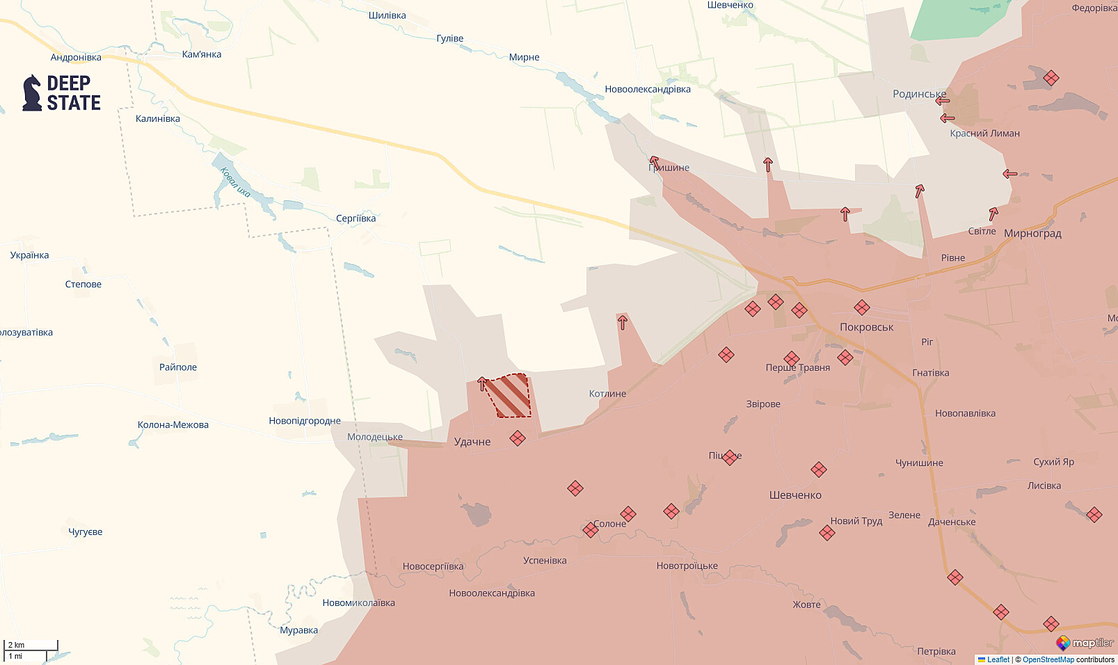У Донецькій області російські війська просунулися поблизу Удачного — на захід від Покровська, в бік Дніпропетровської області.