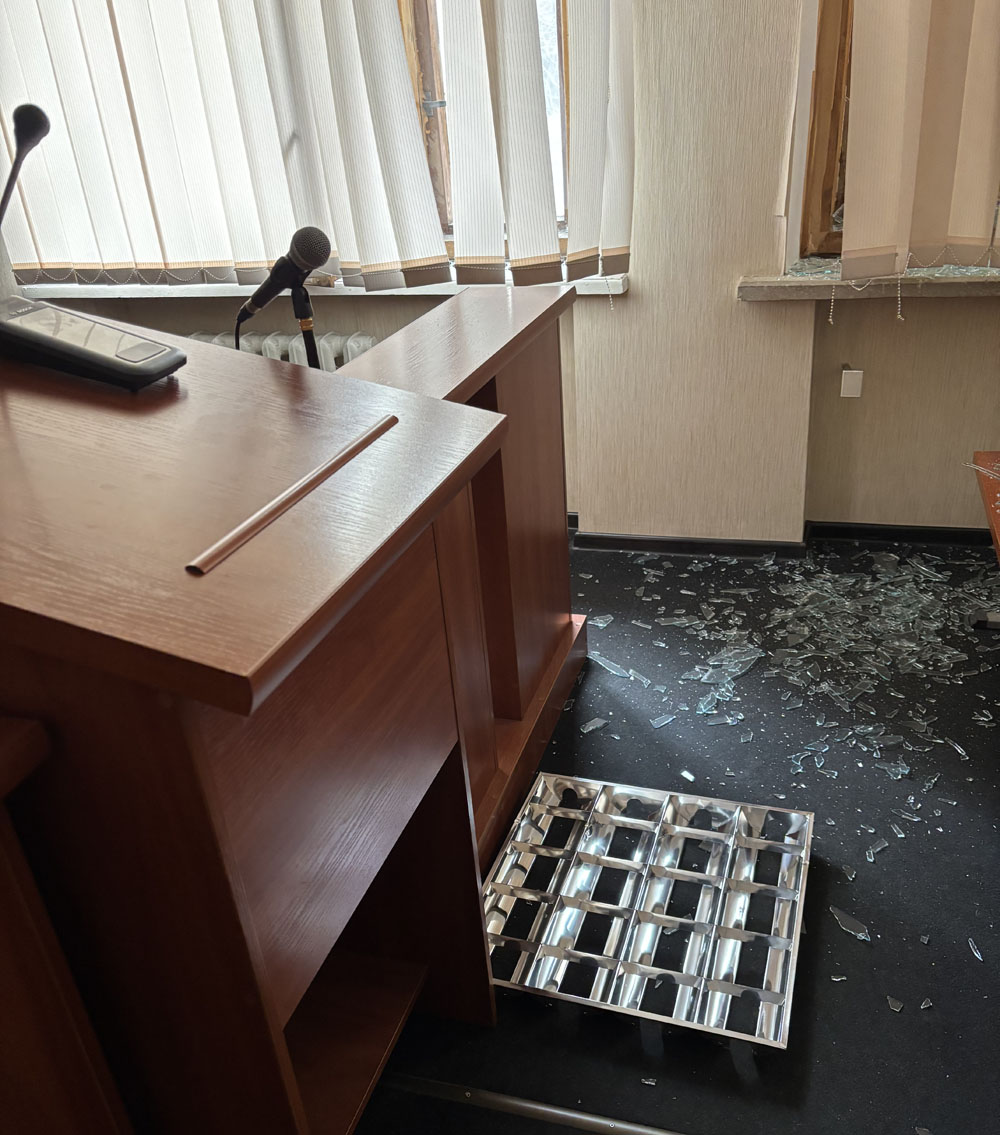 «Від ударних хвиль було пошкоджено більше тридцяти вікон в залах судових засідань, холах та службових кабінетах. Також в двох залах судових засідань частково пошкоджено світильники», – розповіли у суді.