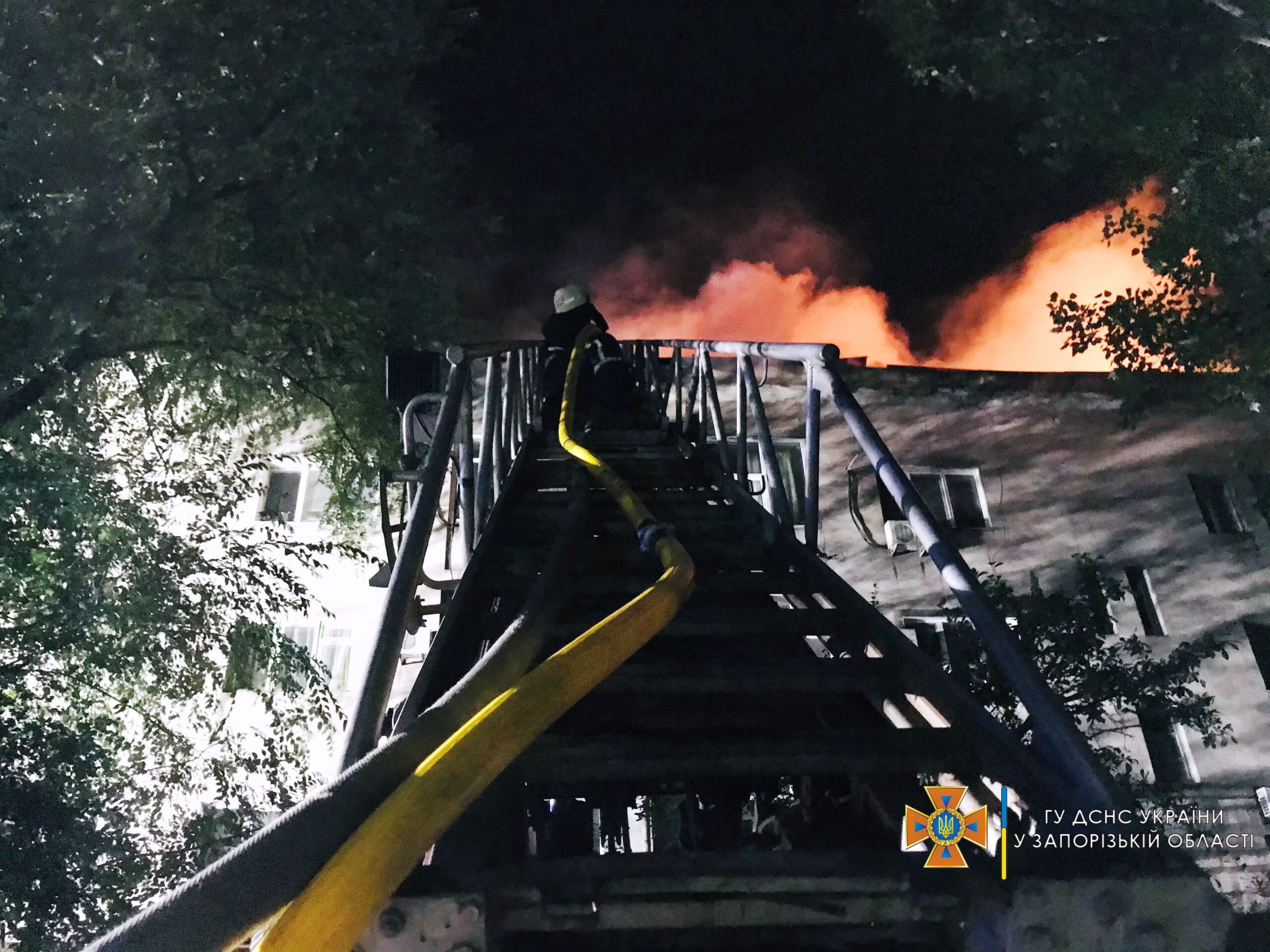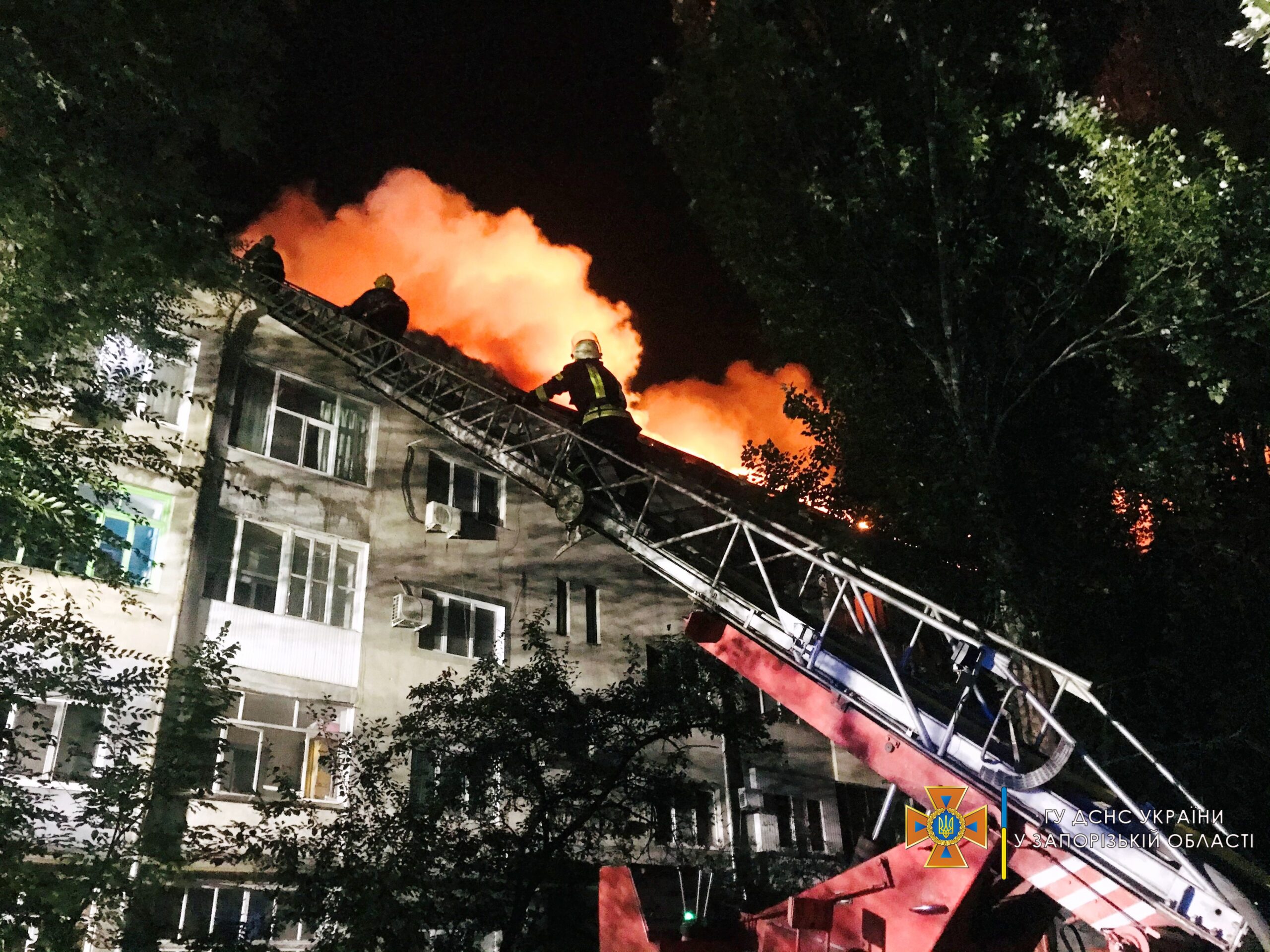 Як повідомляє пресслужба ГУ ДСНС в Запорізькій області, пожежа почалася близько 21:00, виклик гарячу лінію «101» Служби порятунку надійшов о 21:15. На місці стало відомо, що горить дах в чотирьохповерховому будинку. Загальна площа загоряння склала 450 кв.м. Масштаб вражав! Вогонь швидко розповсюджувався, через те, що на даху в той день і в попередні велися ремонтні роботи. На даху знаходилася велика кількість будівельних матеріалів, у тому числі — легкозаймистих.