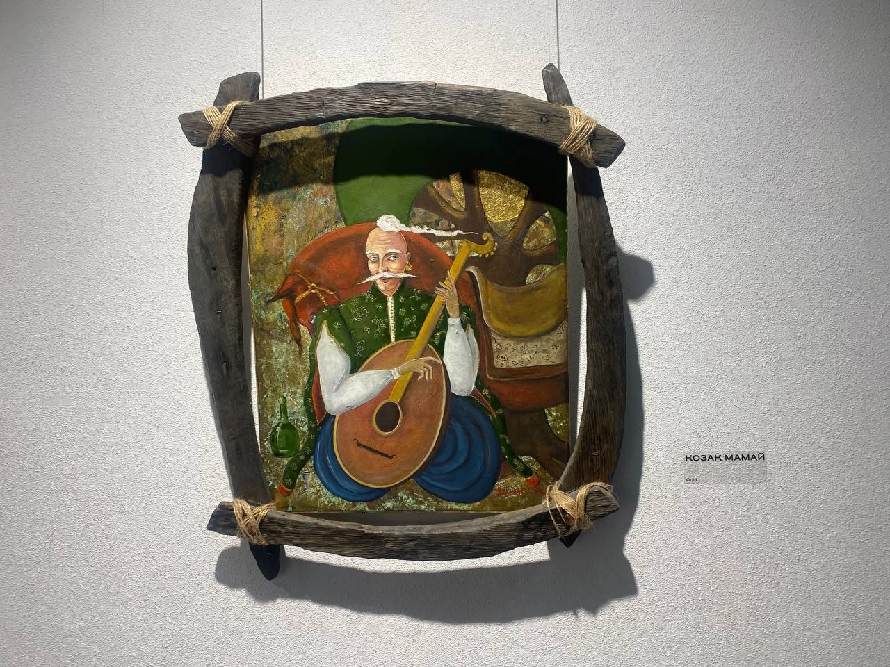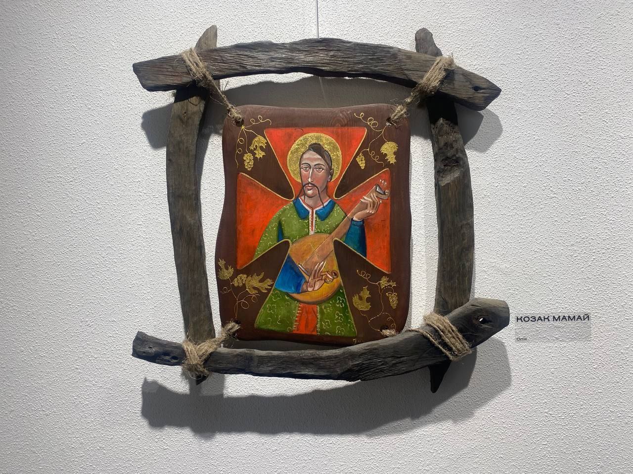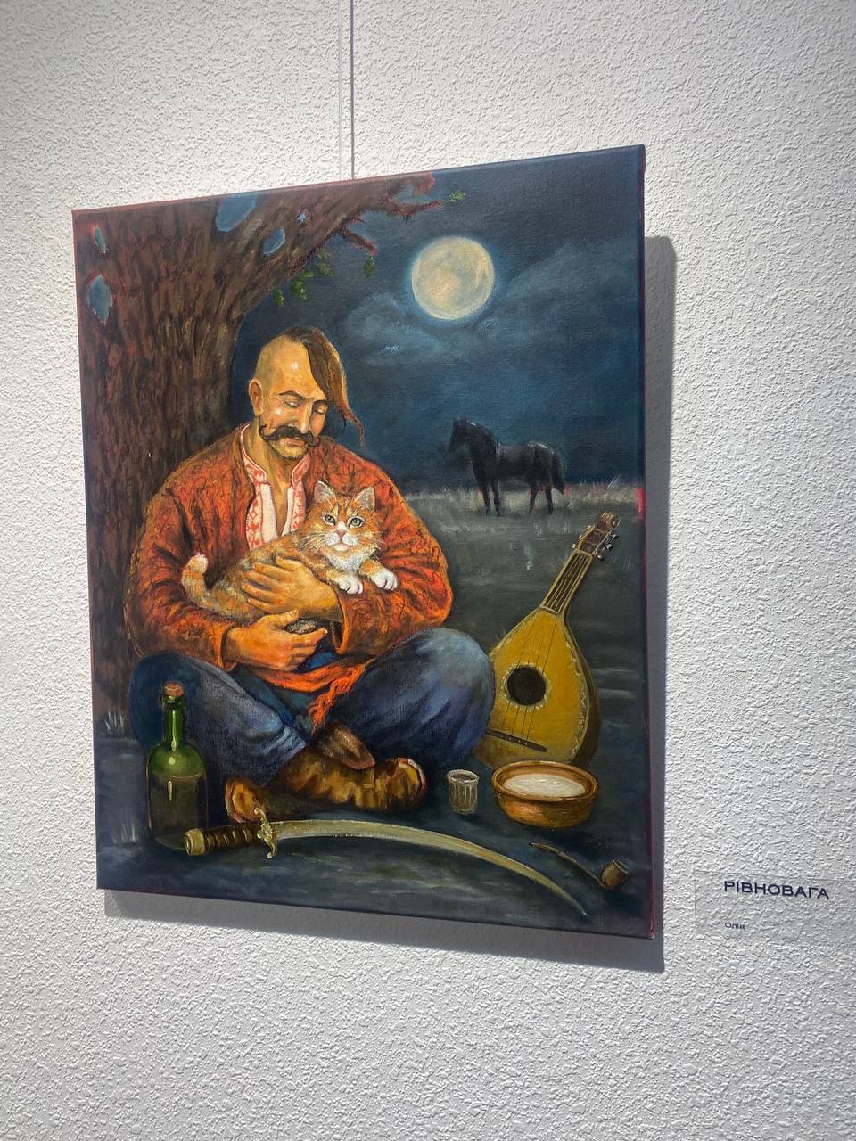 Особливо привертає увагу серія з Мамаями – улюблена тема авторки. Наприклад, «Мамай на бику»: козак верхи на милій тварині на тлі рожевого заходу сонця.