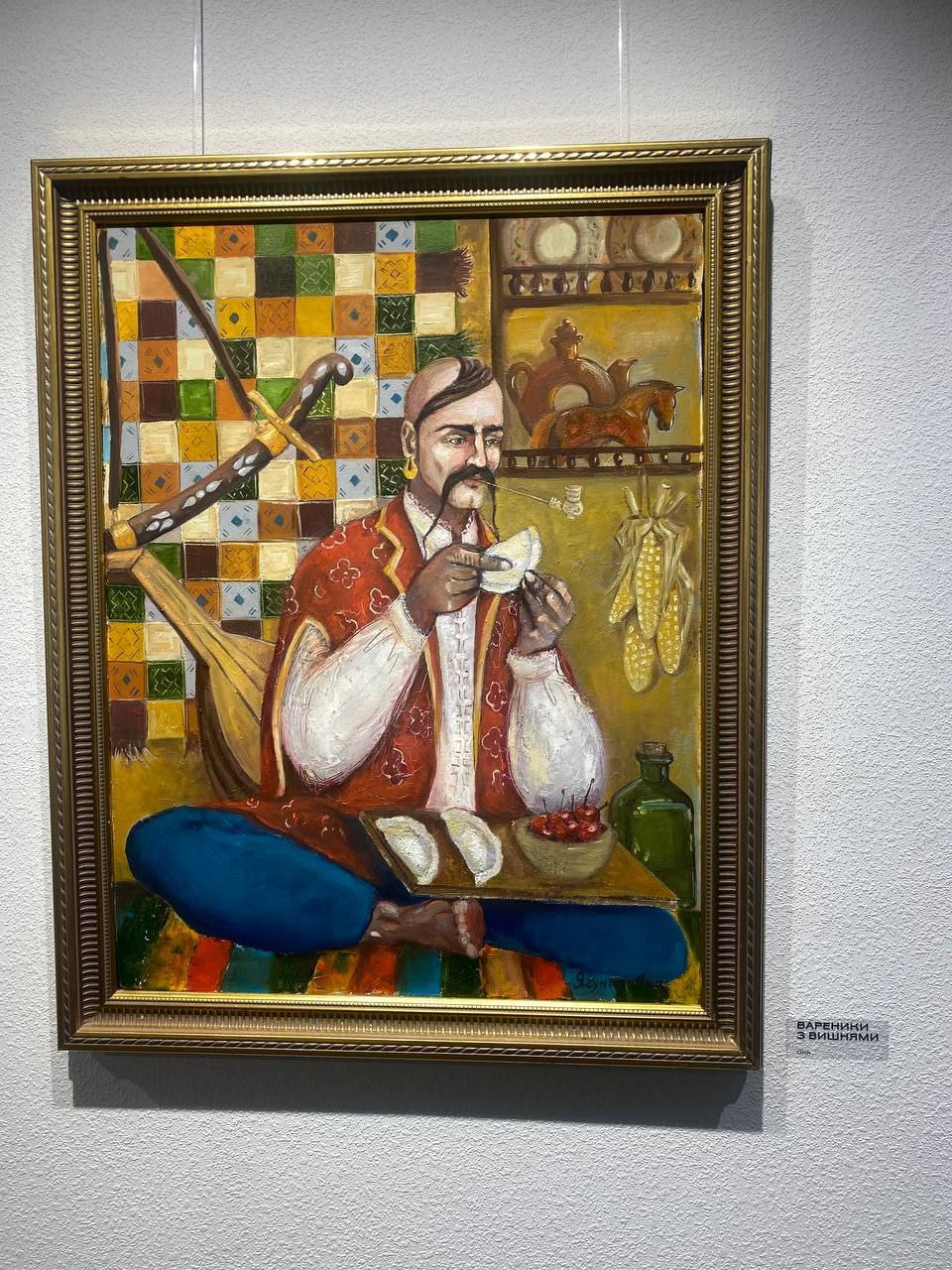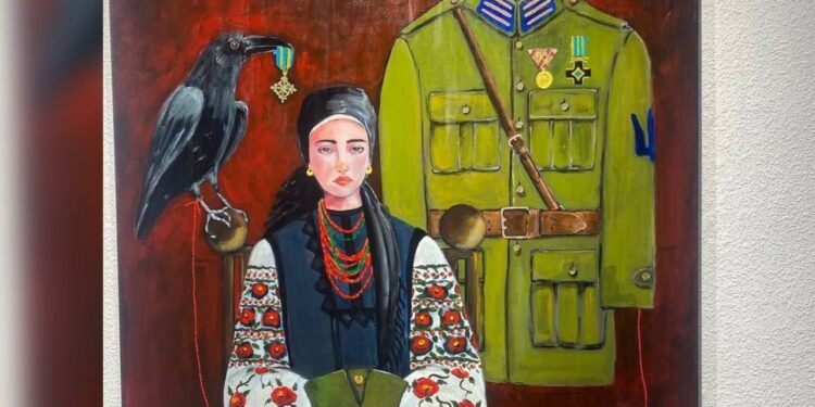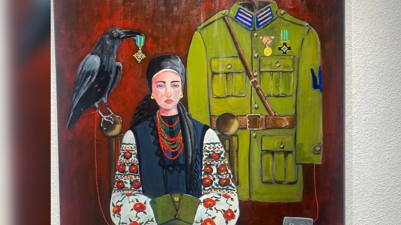На виставці представлені картини, створені починаючи з 2021 року. Це серія воєнних робіт, де українські символи поєднані з сучасною стилістикою та відображають реалії сьогодення. Серед експонатів – «Чорний ворон. Річниця»: жінка святкує річницю весілля, але її чоловіка вже немає в живих.