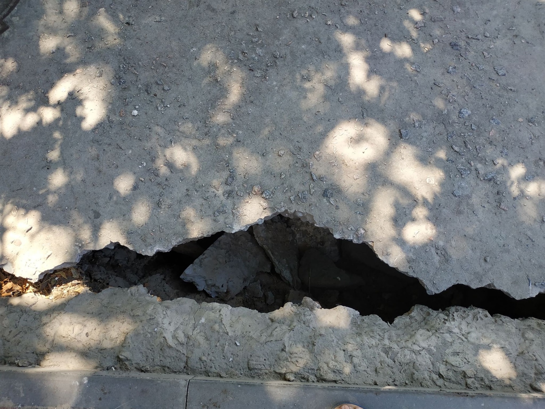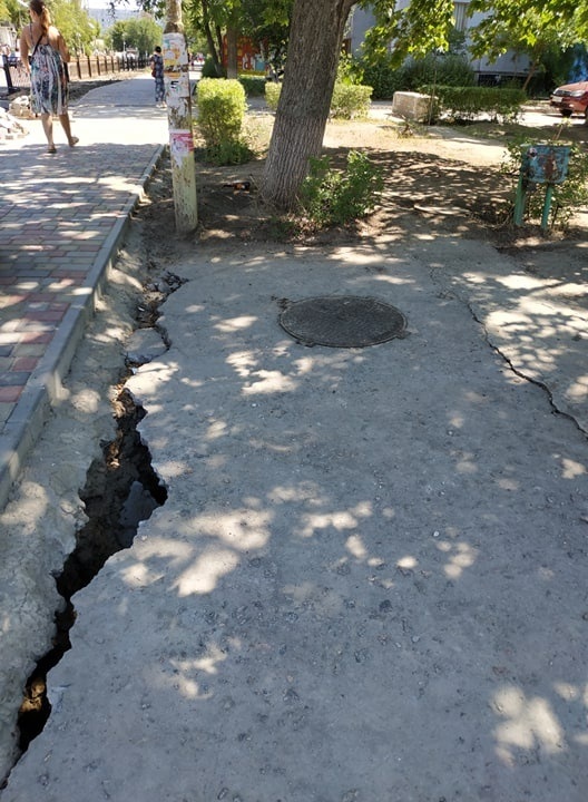 На вулиці Українській неподалік від магазину «Ковбас-маркет» утворилися величезна тріщина між дорогою та тротуаром. Якщо комунальні служби (або ж ті хто відповідальний за цю ділянку) не будуть вживати заходів – пішохідна доріжка теж піде під землю, а її нещодавно реконструювали, повідомляє «energodar.city».