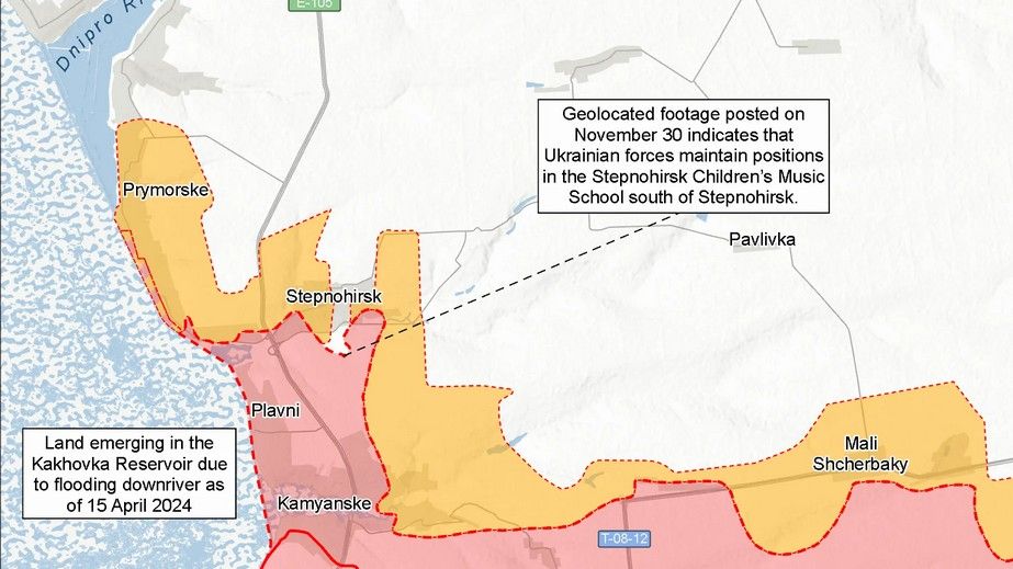 «Геолокаційні відеозаписи, опубліковані 30 листопада, свідчать про те, що українські війська нещодавно просунулися в Степногірську (на захід від Оріхова)», – заявили в ISW.