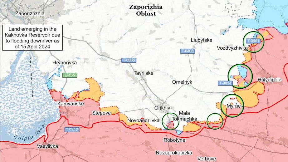 За оцінками аналітиків, на Оріхівському відтинку фронту (захід Запорізької області) військові РФ тиснули поблизу Приморського та Степногірська.