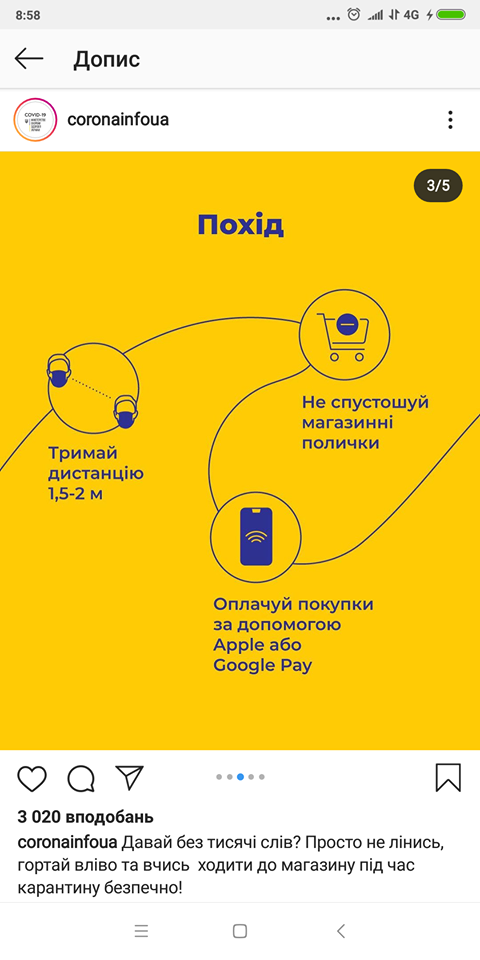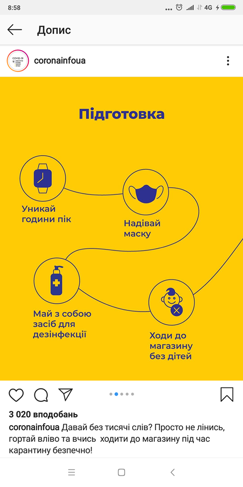 В Україні вже декілька тижнів триває карантин. Громадяни не можуть повістю ізолювати себе, доводиться виходити за покупками продуктів до магазинів. В Інстаграм МОЗ повідомив, як правильно себе поводити в супермаркетах.
