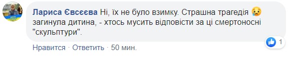 Окрім цього, пан Комаренко заявив, що на місці були попереджувальні таблички, на яких вказано, що залазити на фігури не можна. Як вони мали б захистити відвідувачів від травмування, незрозуміло.