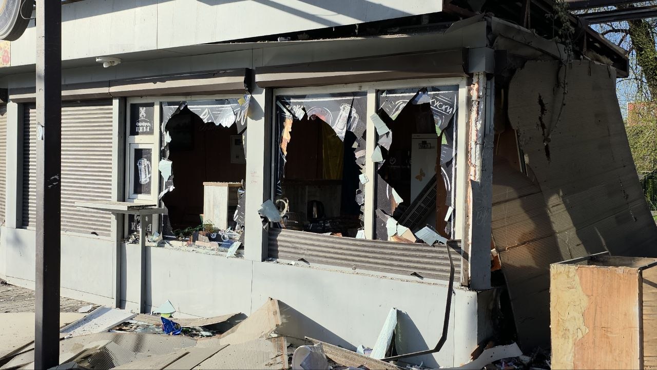 Внаслідок обстрілу пошкодило автостоянку, підприємство, зупинку, прилеглі житлові будинки та кіоск.