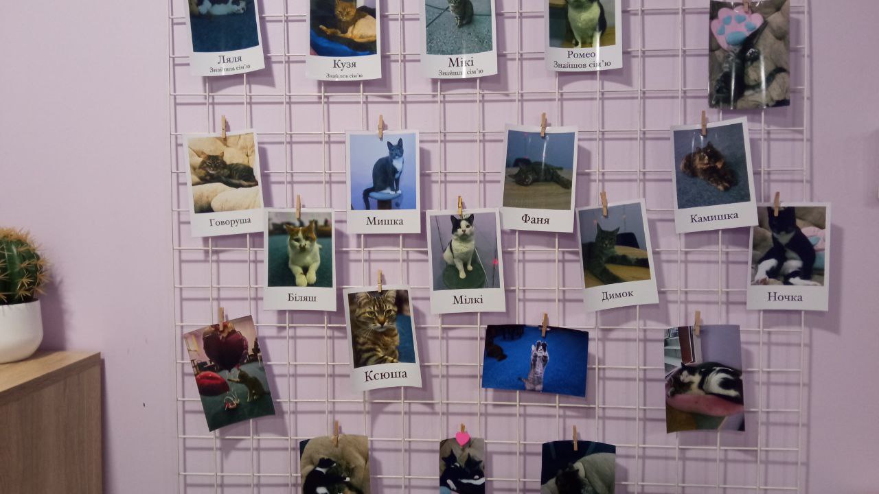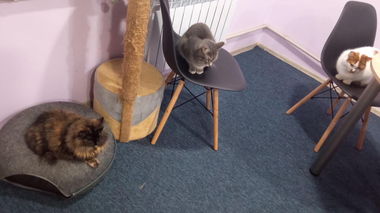 Наразі у котокафе постійно проживає 9 котиків – тварин привезли волонтери, люди з окупованих територій, військові з зони бойових дій. Деяків пухнастиків, яким була потрібна допомога, принесли самі засновники котокафе. Тож всі тварини тут особливі та кожен котик має власну історію.