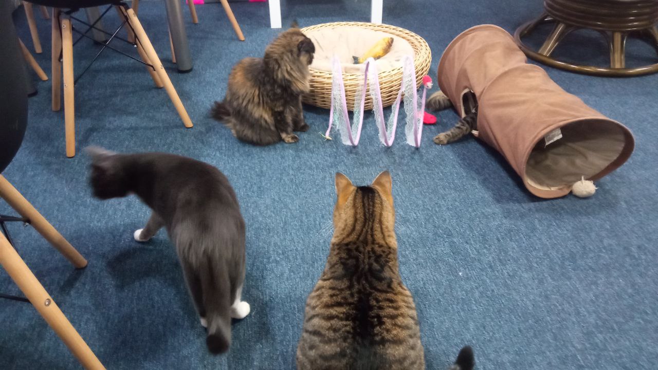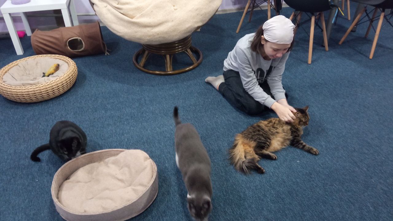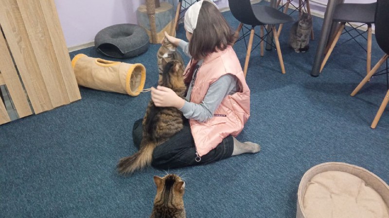 Серед постійних відвідувачів котокафе – діти, деякі приходять сюди кожні вихідні. Дорослі – теж не виняток, люди приходять щоб відпочити, відволіктися, попити каву та, авжеж, погладити котів.