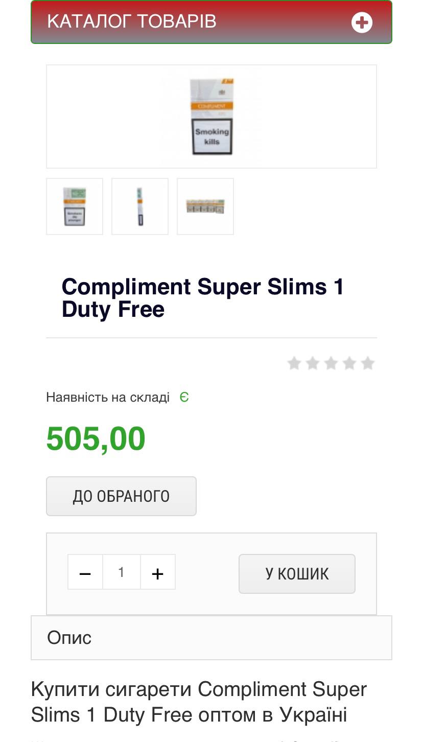 Контрафактні сигарети «Compliment» за 65 гривеньЦіна аналогічних сигарет в супермаркеті