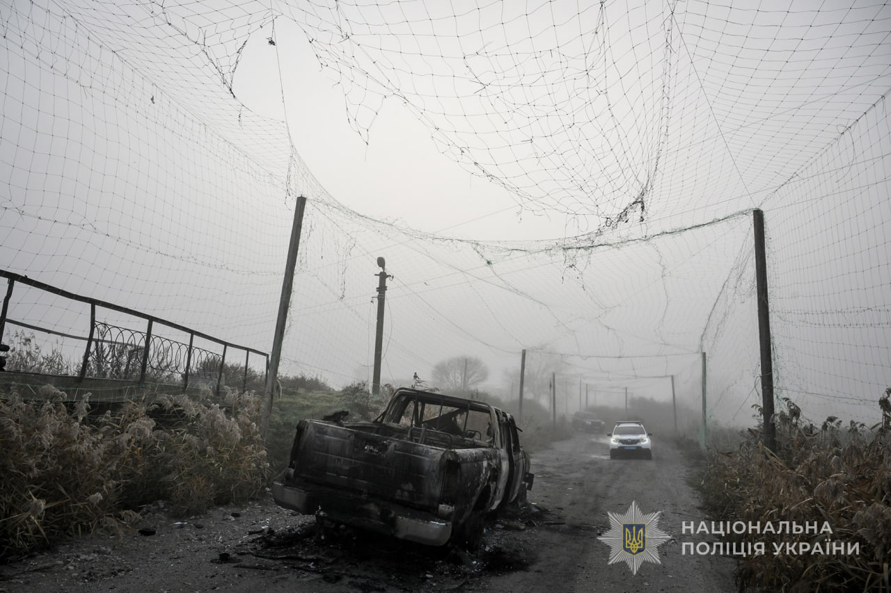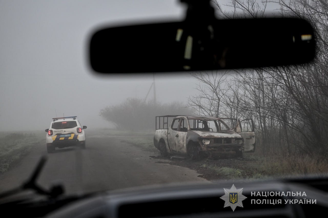 «Найбільша перепона й небезпека – це дрони-«ждуни», які ховаються на дахах напівзруйнованих будівель, на шляхах – переважно за поворотами, щоб зненацька вдарити проїжджаючий автомобіль. Всюди тягнеться оптоволокно. Озброєні антидроновими рушницями поліцейські пильнують навкруги. По місту й у передмісті – десятки спалених автівок», – зазначають правоохоронці.