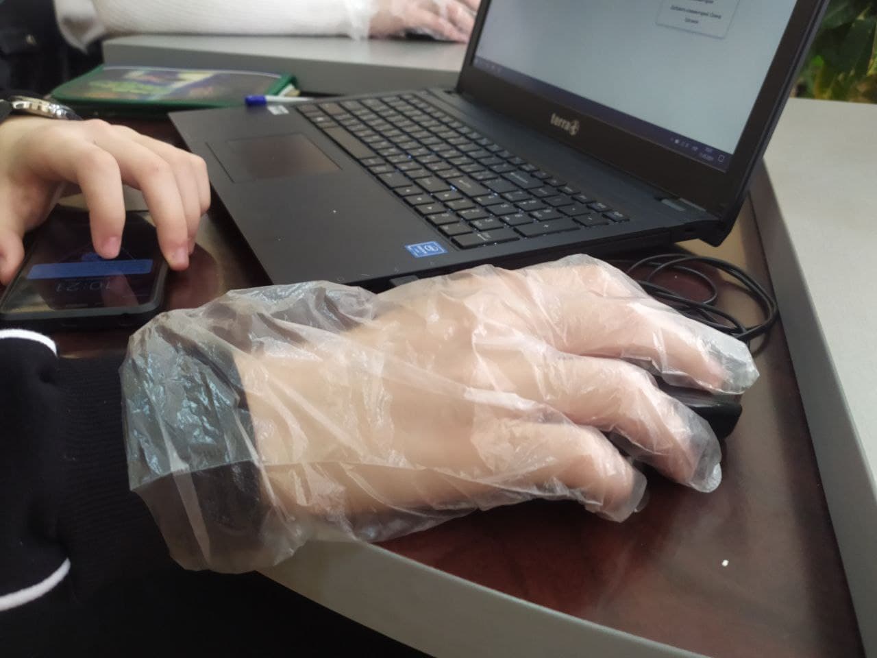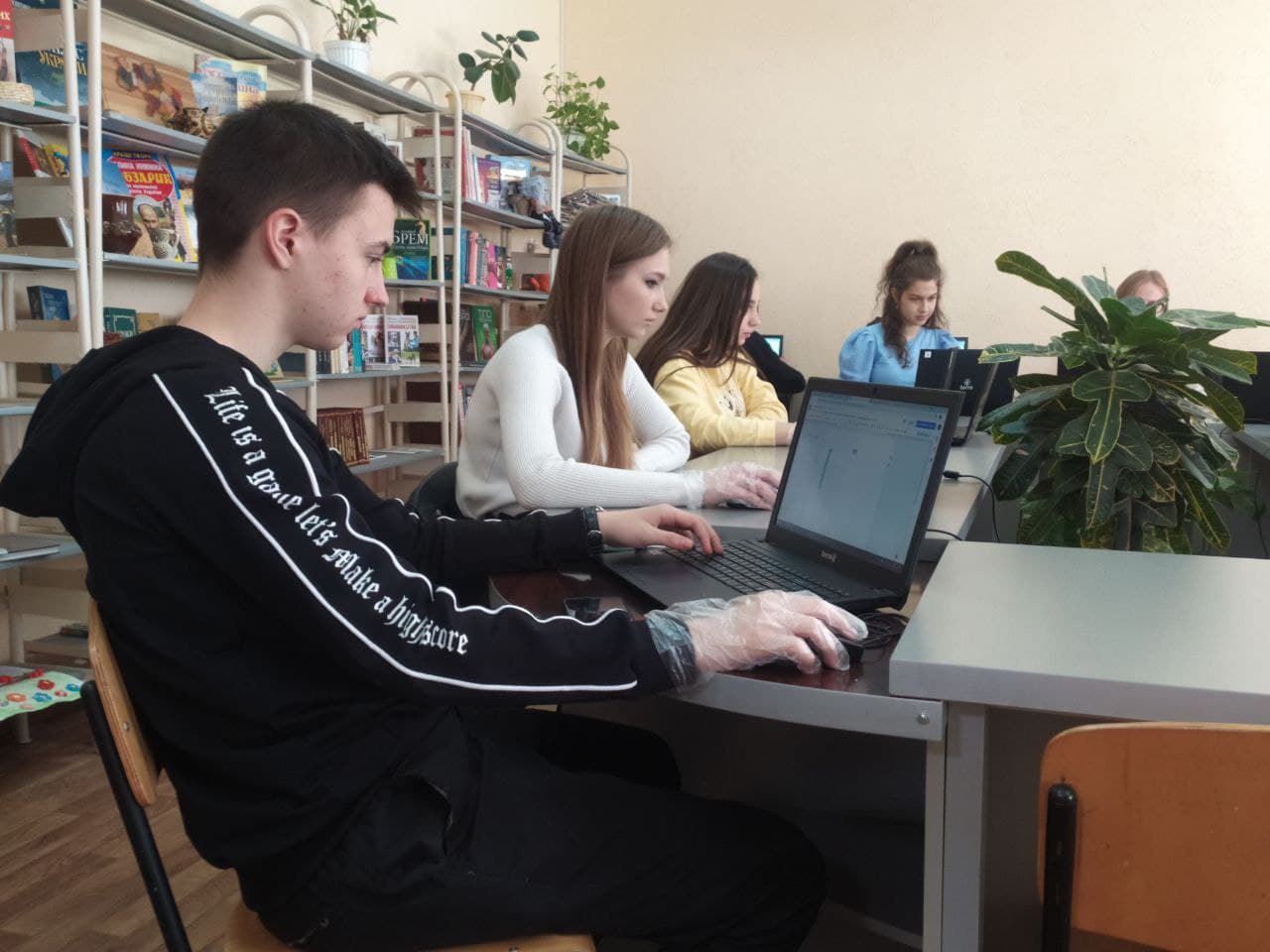 У комп’ютерних класах діти працюють у спеціальних разових рукавичках, на партах у багатьох присутні антисептики.