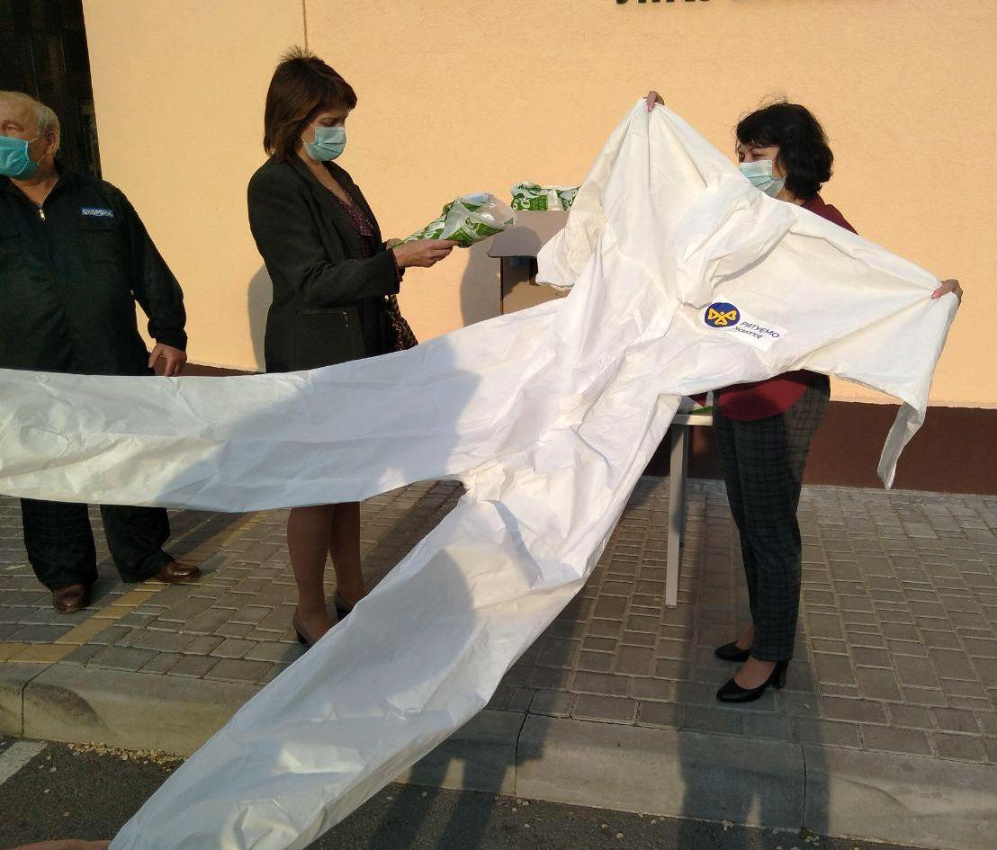 – Потрібна тканина певної якості, вона має бути водонепроникна, повинна бути легка. А ці костюми дуже гарної якості, в них можна працювати чотири години, вони пропускають повітря, тому що чотири години пропрацювати в гумовому одязі дуже важко. В цих костюмах комфортно працювати, – зазначила завідуюча мелітопольської інфекційної лікарні Тетяна Лобанова.