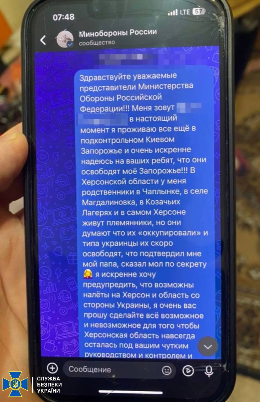 Також встановлено, що вона особисто зверталася до міністерства оборони рф з проханням окупувати Запоріжжя.