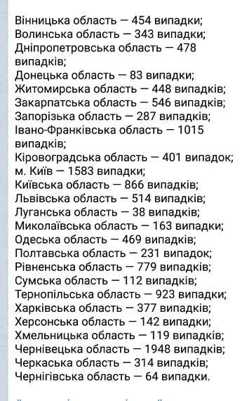 Поширення коронавірусу по областях: