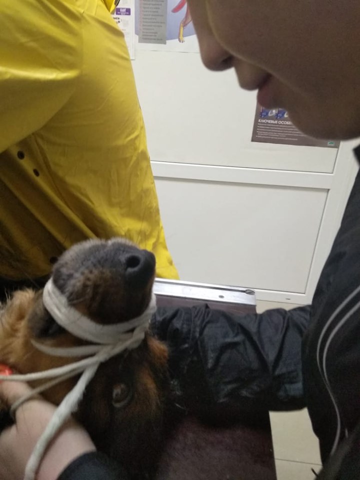 Трохи згодом тварина пішла на контакт тільки до одного з активістів чоловічої статті. Бідолашну відвезли до ветлікарні, де у неї діагностували перелом тазу.