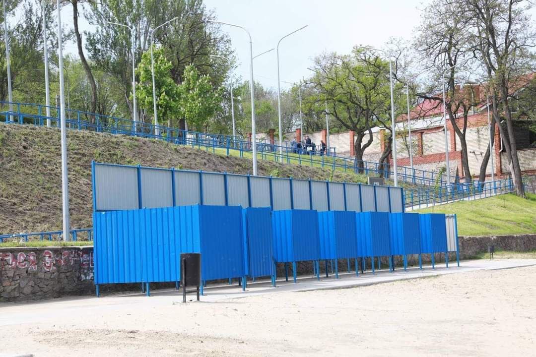 Облаштовано спуск на пляж — сходи та пологий з’їзд. Встановлено два залізні будиночки для медпункту та рятувальників. Влітку там можна буде задихнутися.
