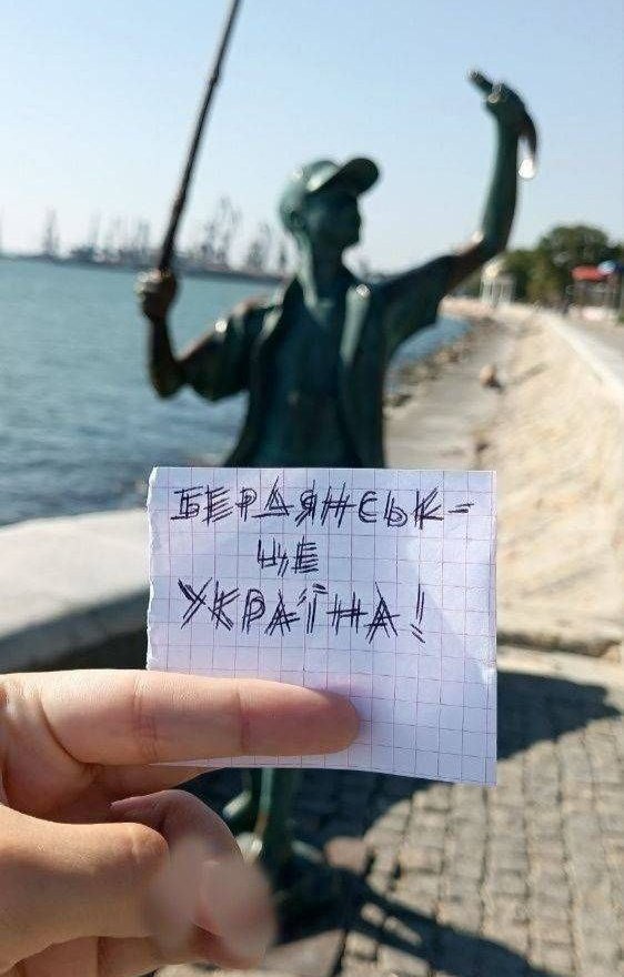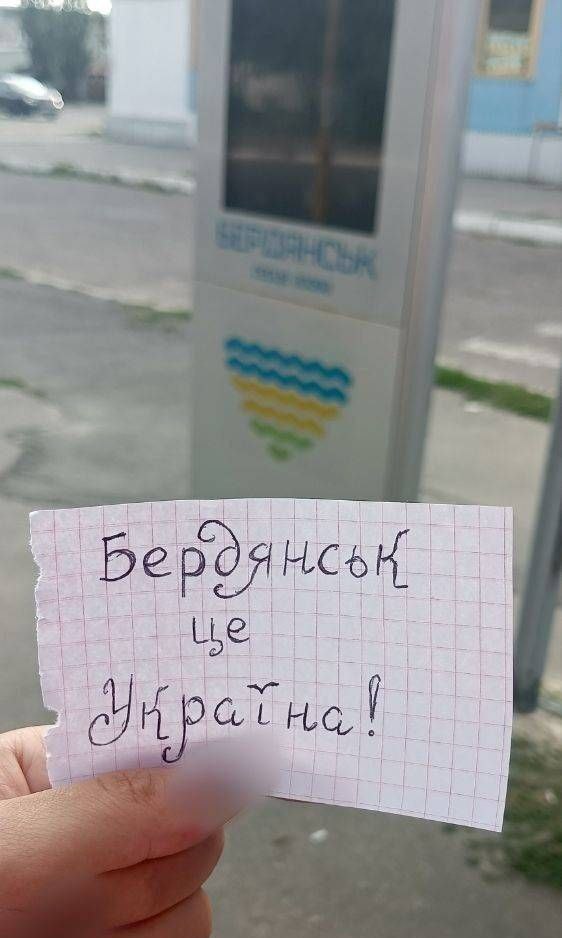 Українці спалюють окупаційну пропаганду та поширюють державні символи в Запорізькій області, зокрема у Бердянську та Мелітополі.