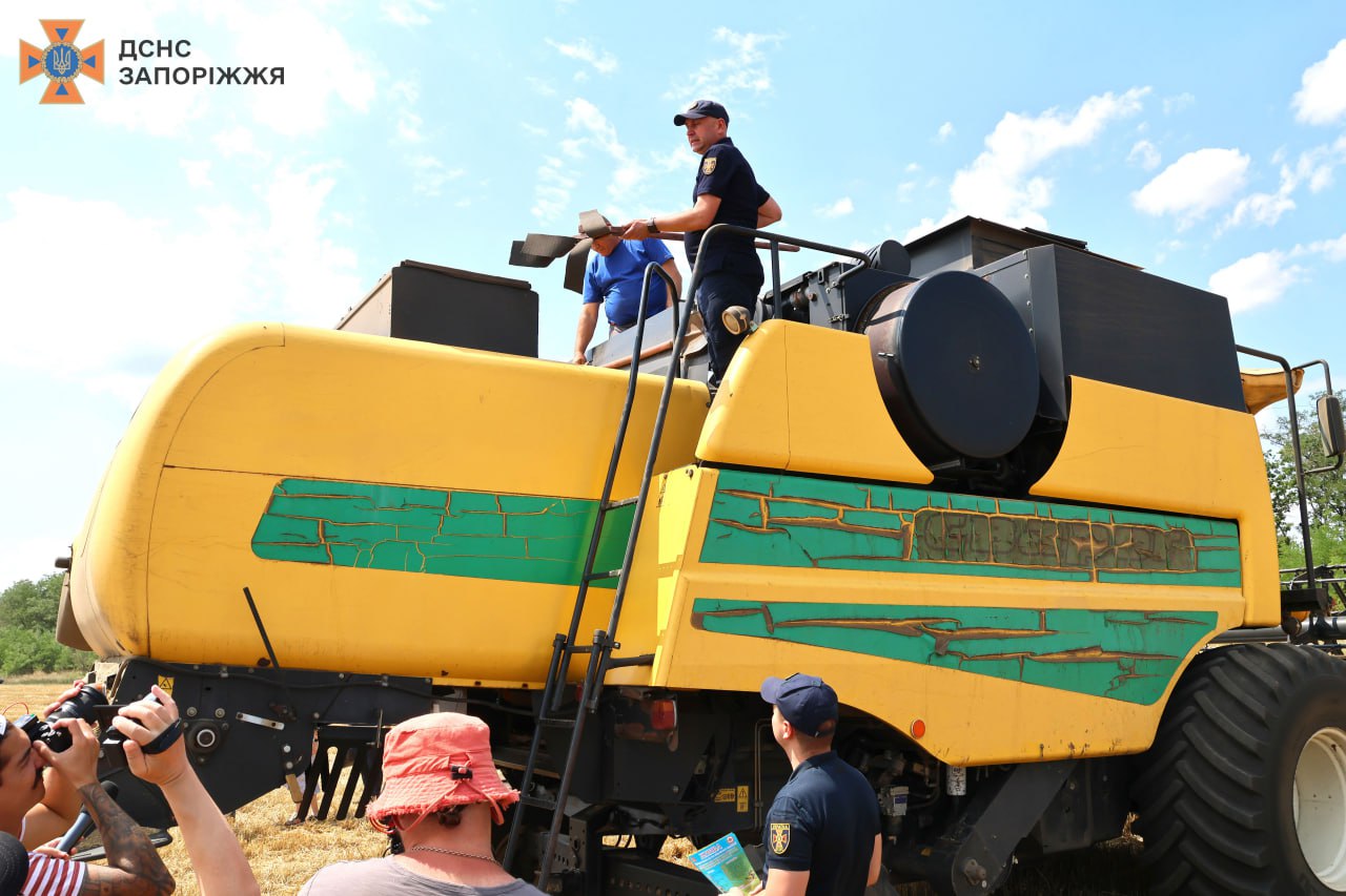 У Запорізькому районі офіцер громади разом із фахівцями оглянув комбайни, перевірив вогнегасники та пояснив, як діяти в разі загоряння чи виявлення небезпечних предметів.