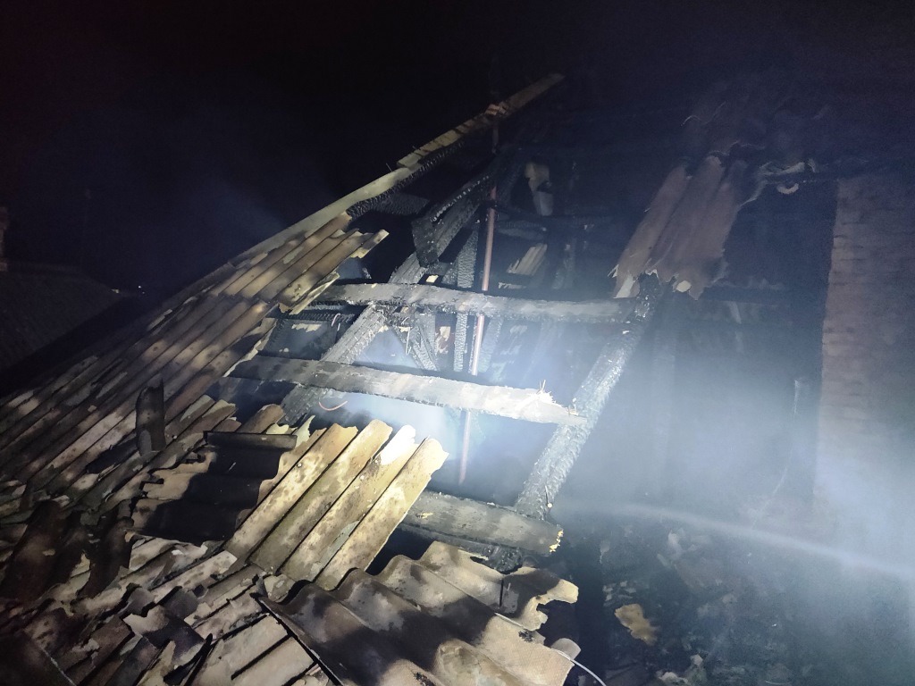 Прибувши на місце події рятувальники встановили, що горить прибудова та дах житлового будинку на загальній площі 80 кв.м.