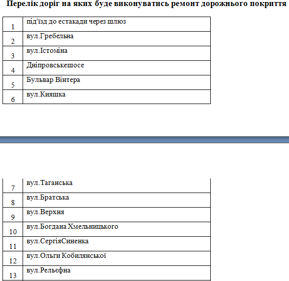 Згідно інформації в тендерній документації, загальна площа доріг, які потребують ямкового ремонту, склала 3 109 м2. Зазначимо, що роботи будуть виконувати на 121 вулиці, які розміщені в Хортицькому і Дніпровському районах.