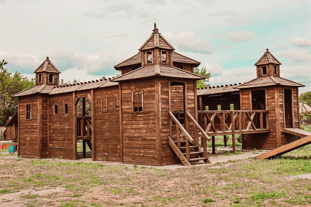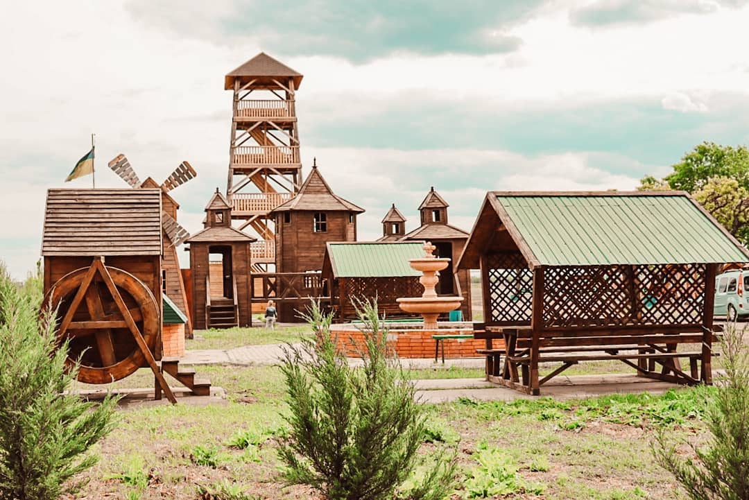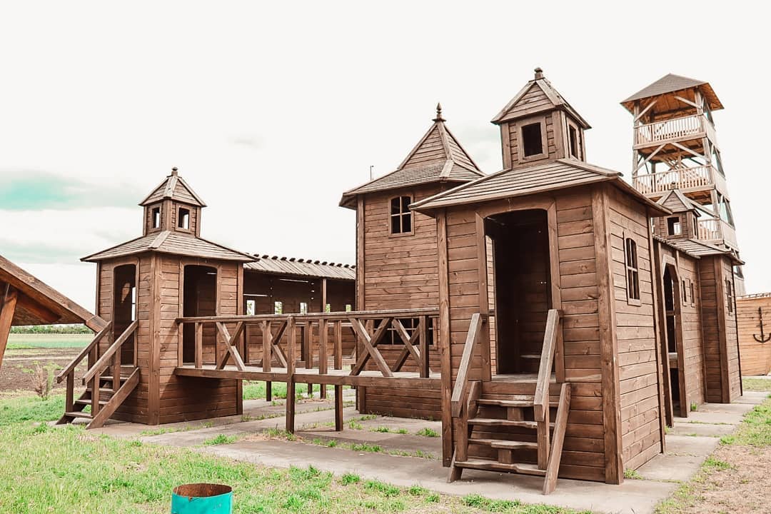 Тут можна побачити величезний дерев’яний корабель з гарматами, штурвалом і каютою, форт-лабіринт, спостережну чотириповерхову вежу, водяний та вітряний млин , віз, гойдалки, футбольне поле з тризубами та ін. Ми впевненні, що від побаченого захоплює дух не лише в малечі, але й в дорослих.