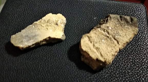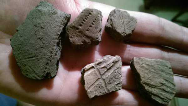 «На правому високому березі річки ми побачили невеликий курган, який нещадно розорюється. Походивши по оранці, навколо кургану ми назбирали фрагменти ліпної орнаментної кераміки, вістря з кременю, пращевий і точильний камені, крем’яні відщепи та побачили чимало кісток. Вочевидь, плугом вже зруйновані поховання доби бронзи», — пише він.
